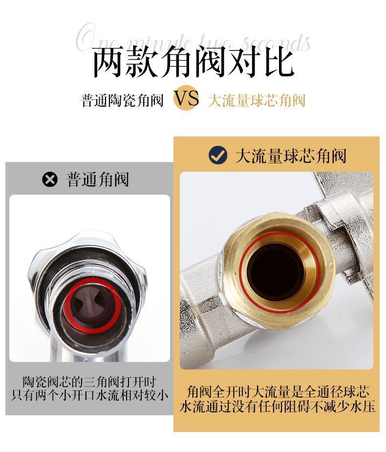 대형 흐름 삼각형 밸브 구형 올 스루 스위치 화장실 온수기 냉수 및 온수 정지 밸브 4 점 6 점 각도 밸브 대외 무역스토어 가기