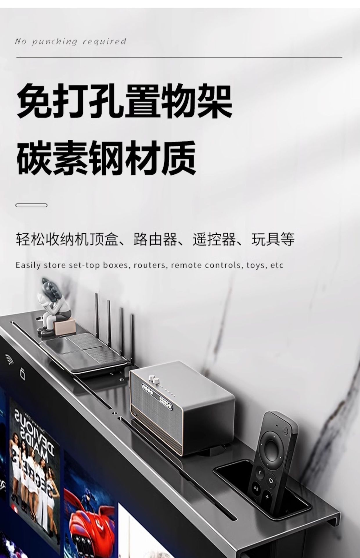 TV 탑 스토리지 랙 거실 디스플레이 탑 브래킷 라우터 광학 고양이 브래킷 펀치 프리 스토리지 랙