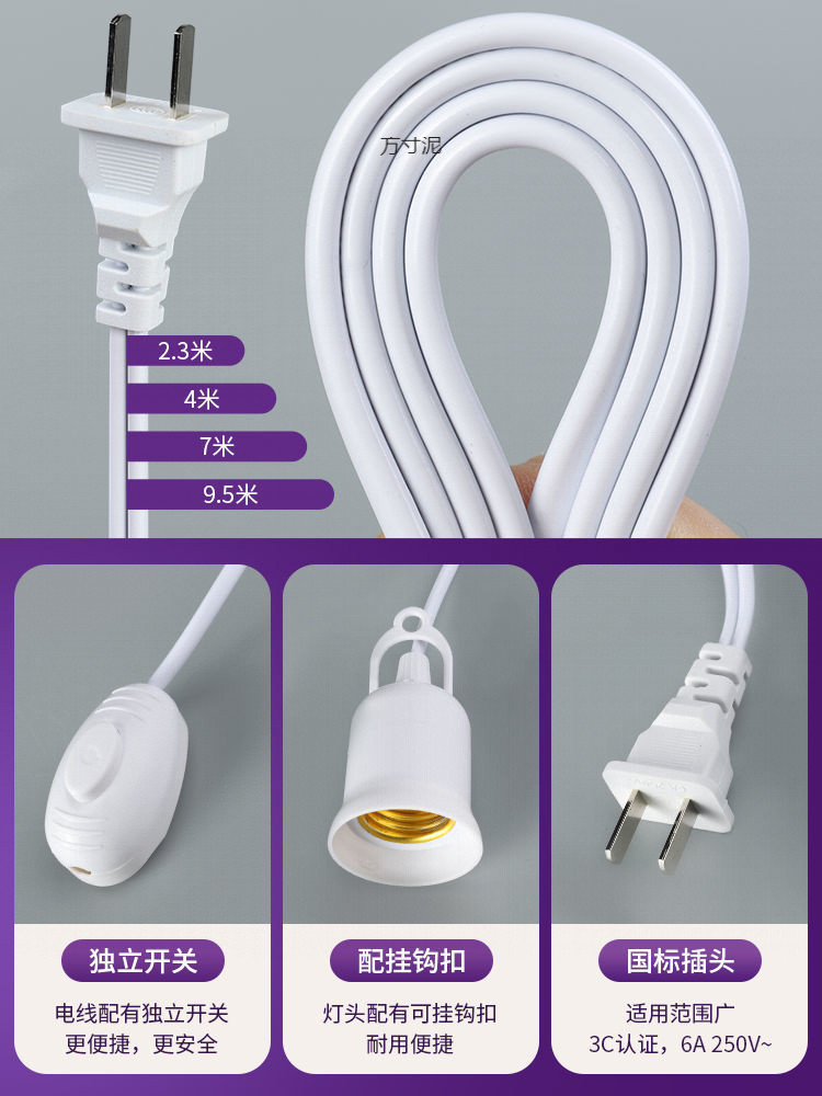 가정용 LED 전구 간단한 소켓 램프 E27 플러그 스위치 라인 슈퍼 밝은 램프 교수형 스크류 램프 홀더 도매