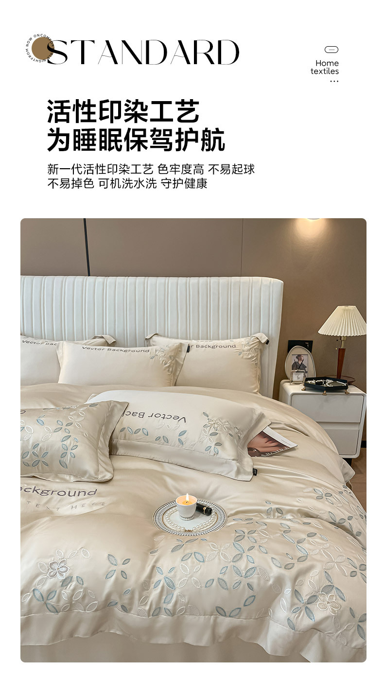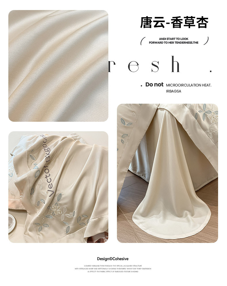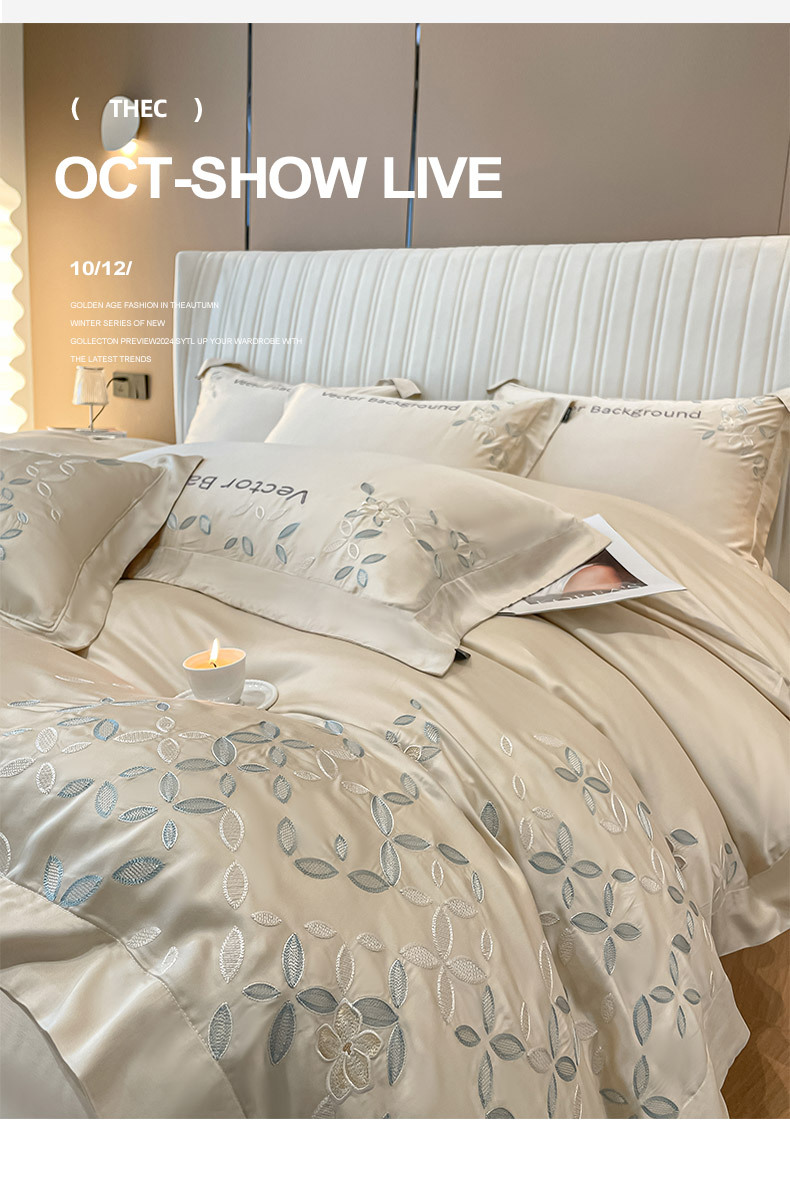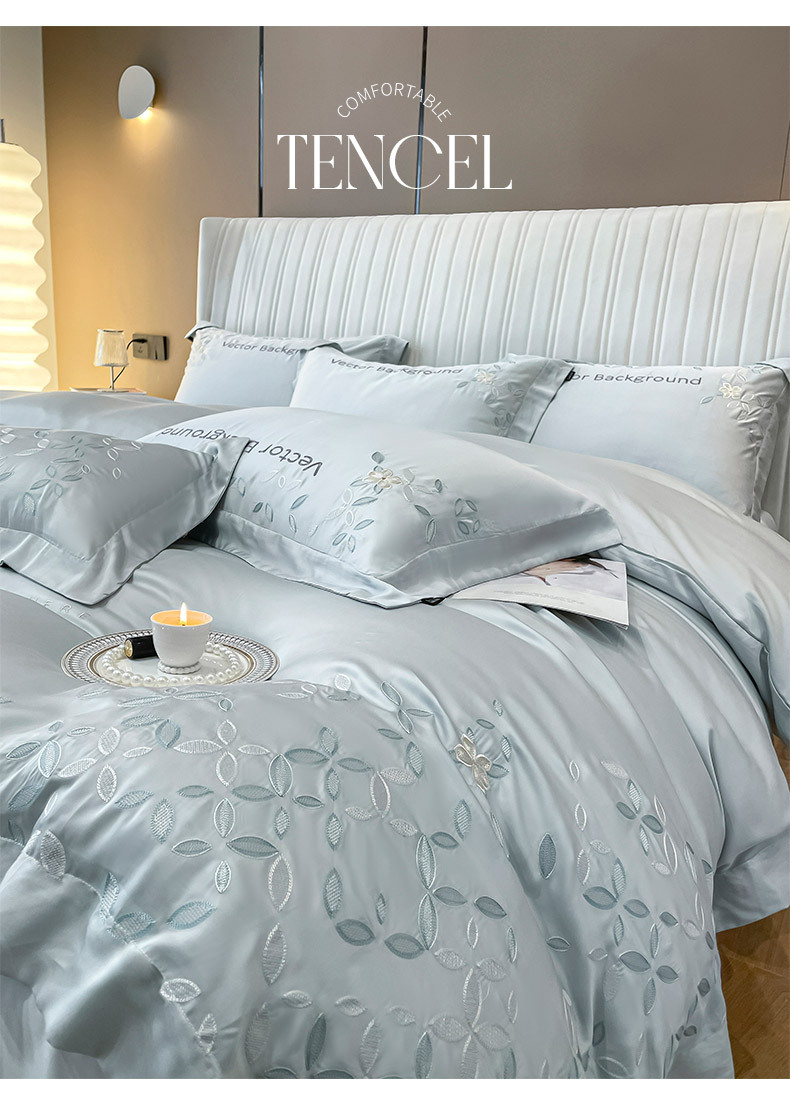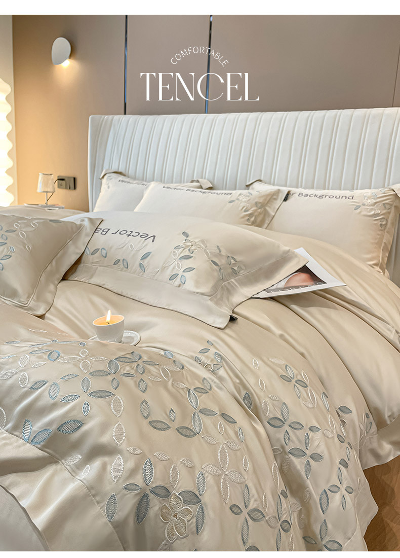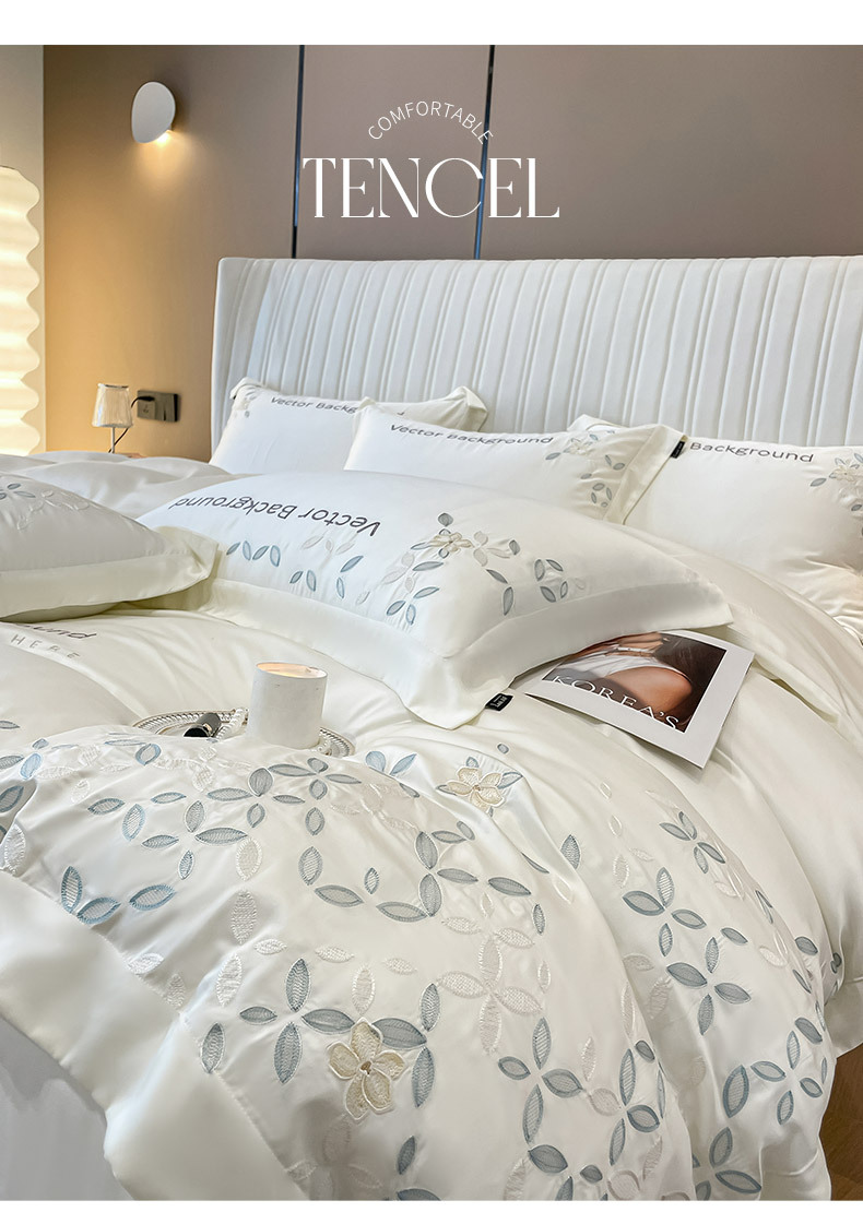 고급 감각 여름 란징 텐셀 자수 4 종 세트 양면 아이스 실크 벌거 벗은 수면 Lyocell 섬유 침대 시트 퀼트 커버스토어 가기
