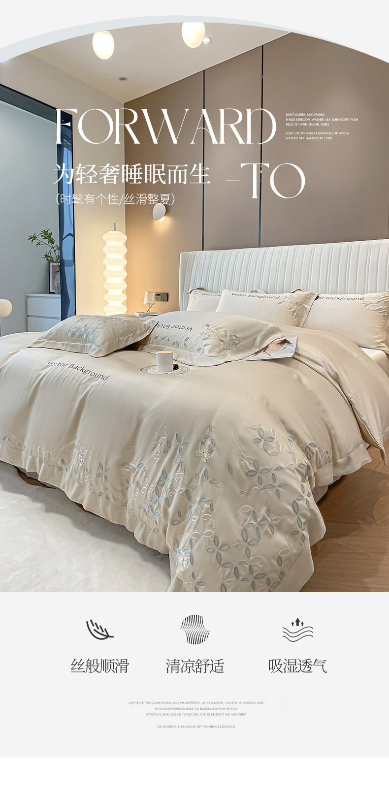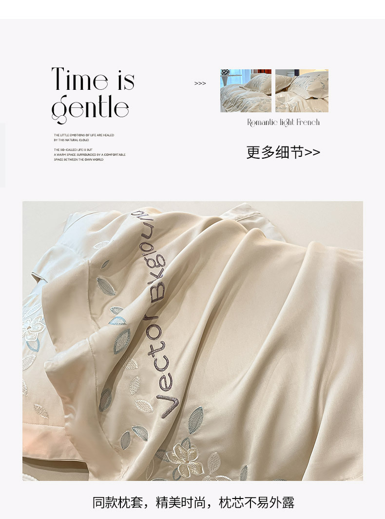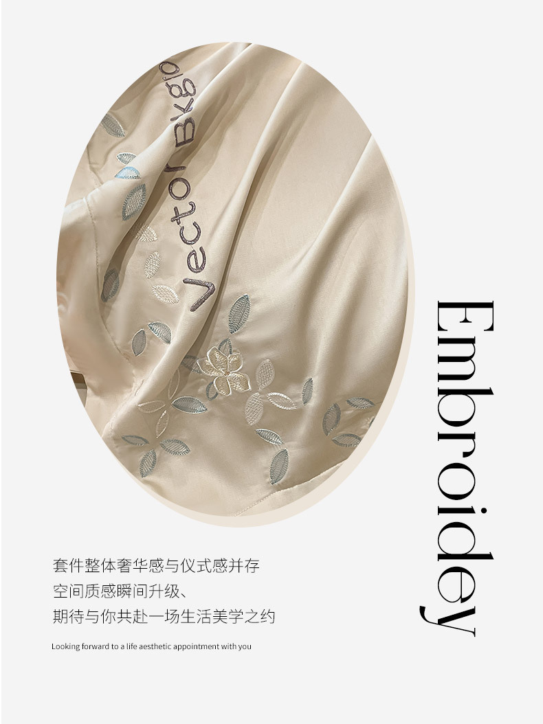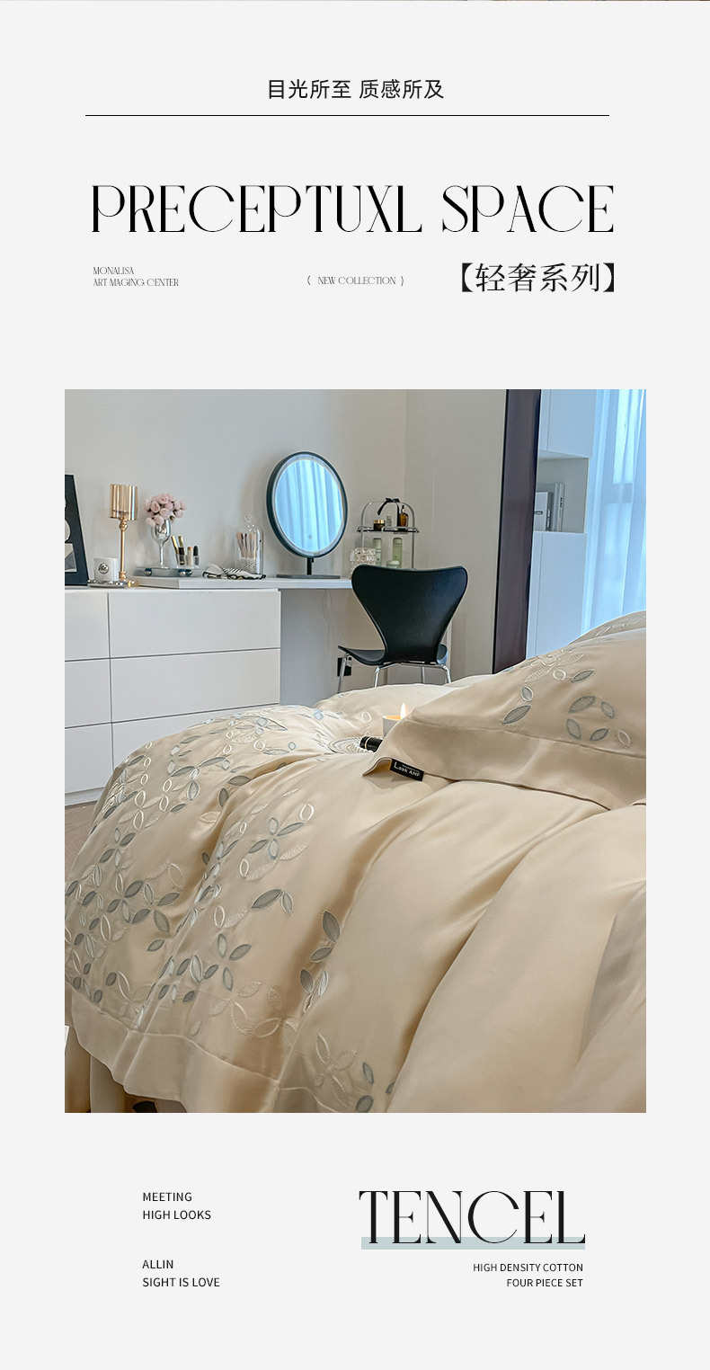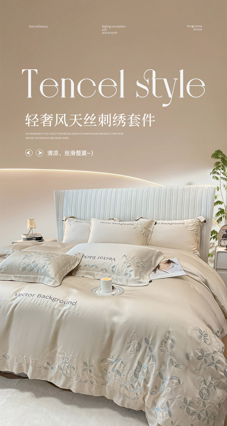 고급 감각 여름 란징 텐셀 자수 4 종 세트 양면 아이스 실크 벌거 벗은 수면 Lyocell 섬유 침대 시트 퀼트 커버스토어 가기