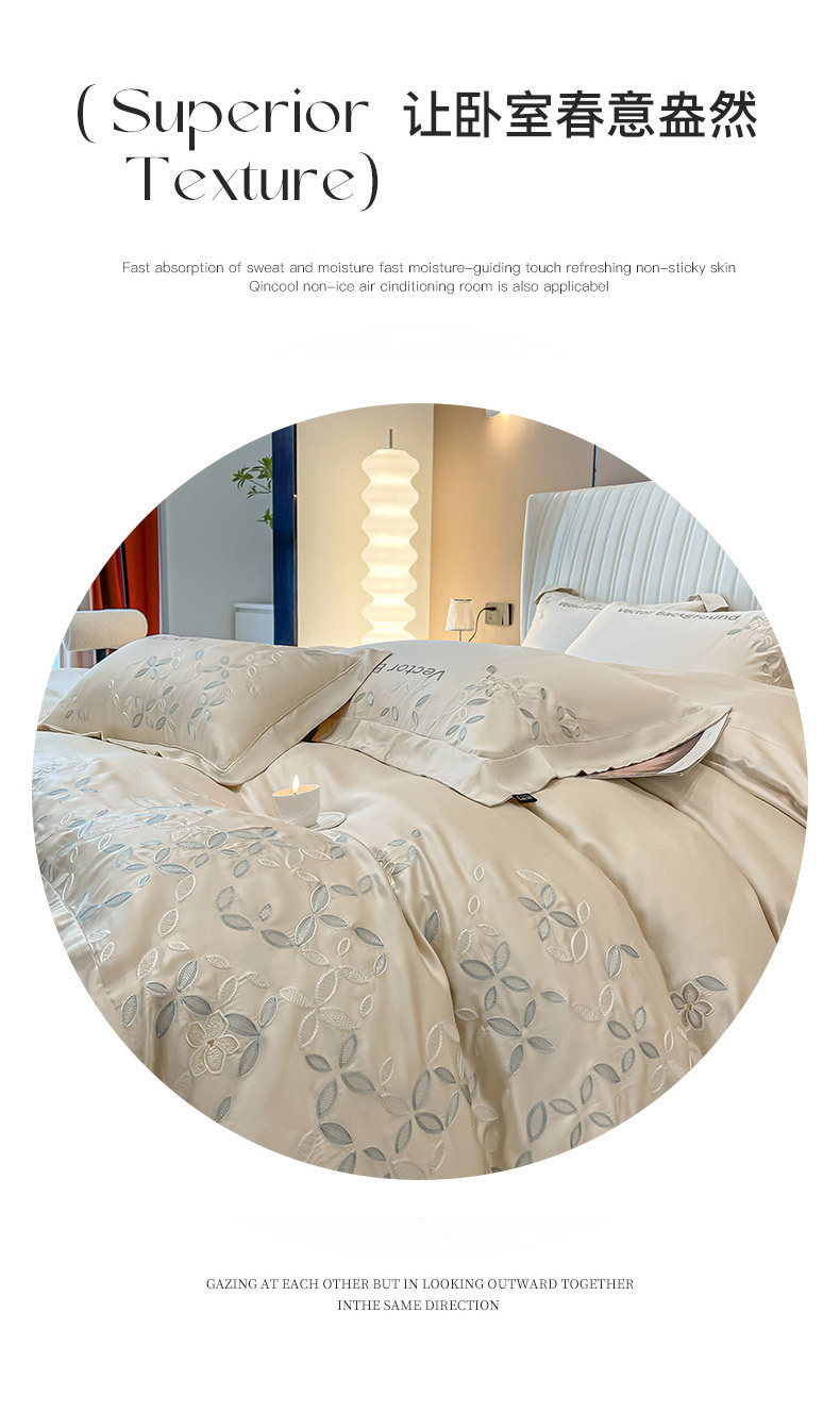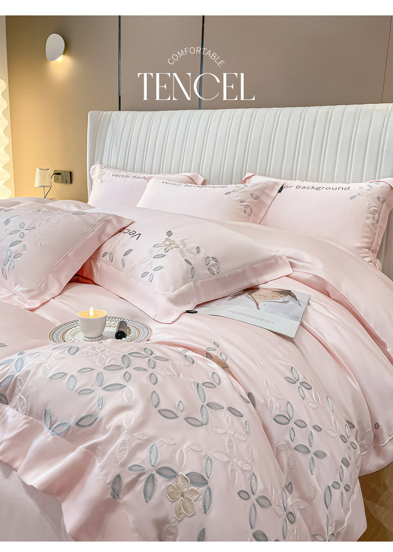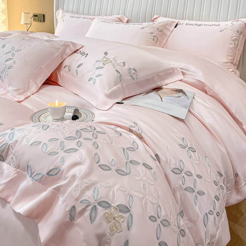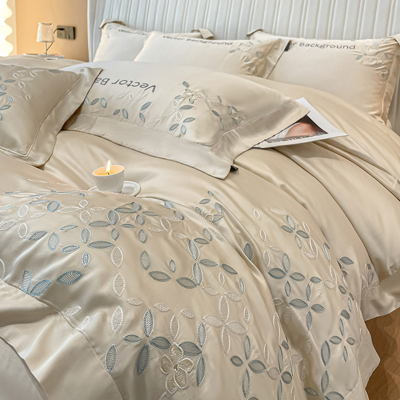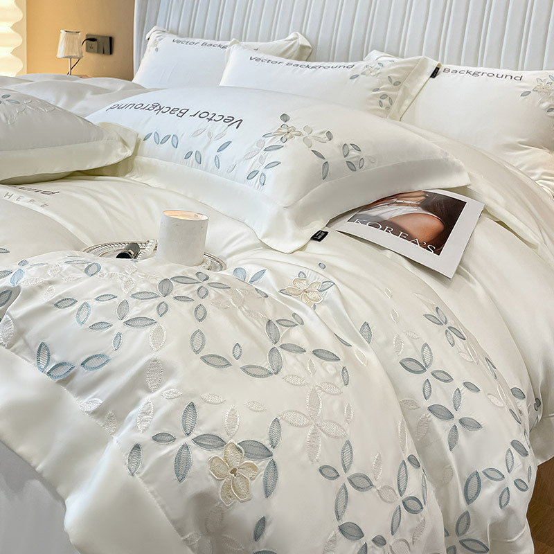 고급 감각 여름 란징 텐셀 자수 4 종 세트 양면 아이스 실크 벌거 벗은 수면 Lyocell 섬유 침대 시트 퀼트 커버