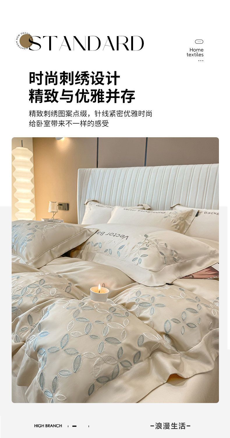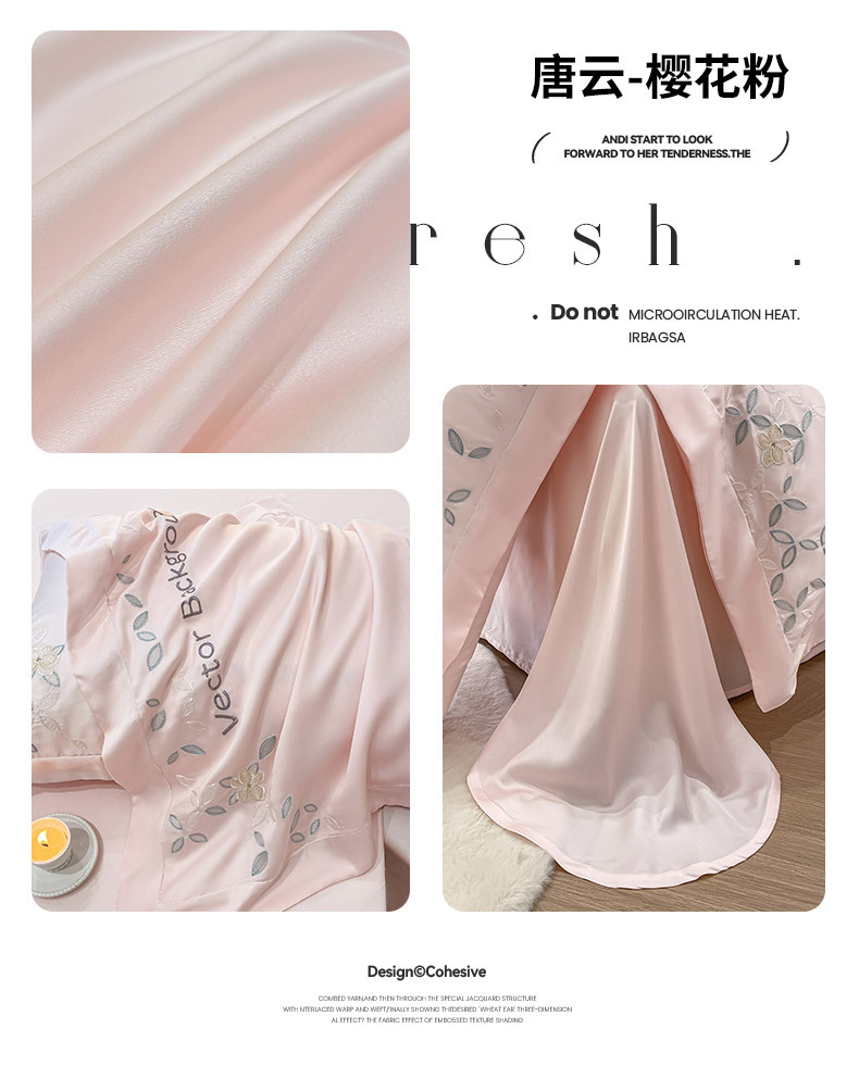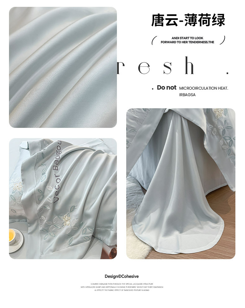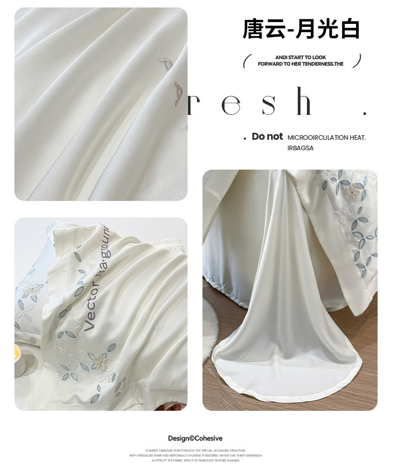 고급 감각 여름 란징 텐셀 자수 4 종 세트 양면 아이스 실크 벌거 벗은 수면 Lyocell 섬유 침대 시트 퀼트 커버