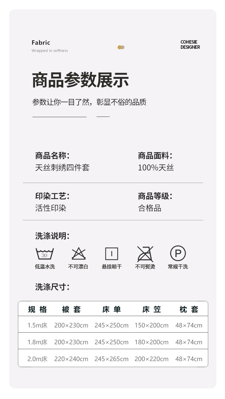 • 1.5m 침대 [시트 4개 세트] - 200x230cm 이불심에 적합