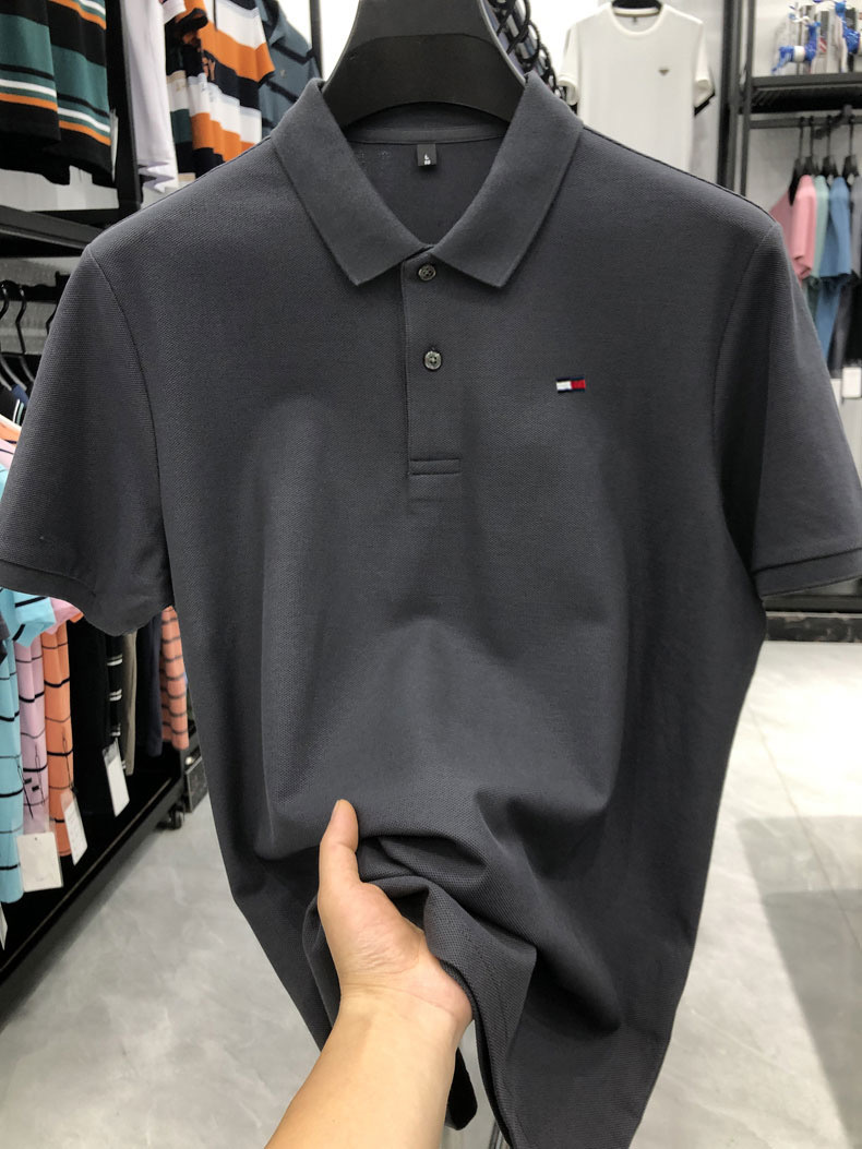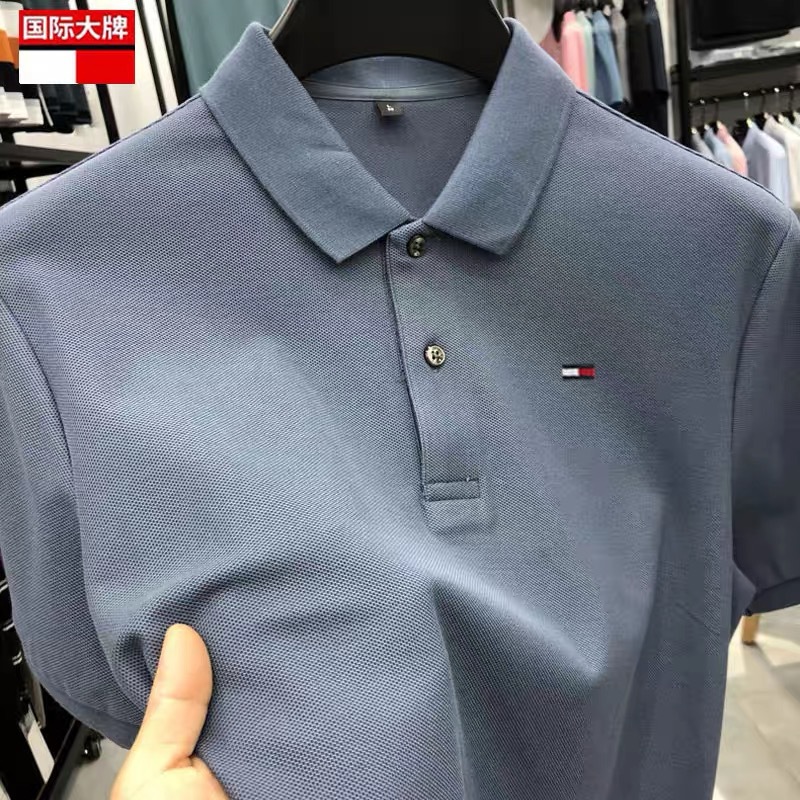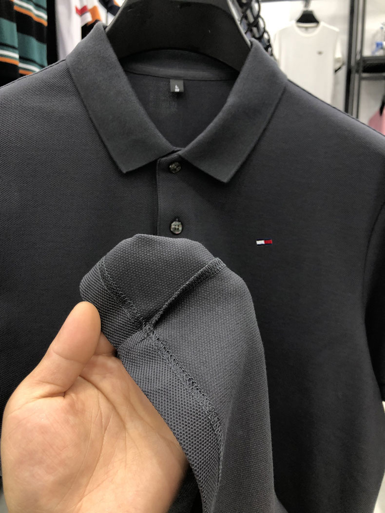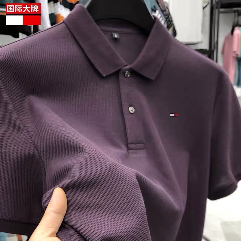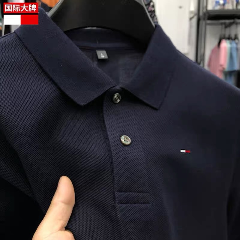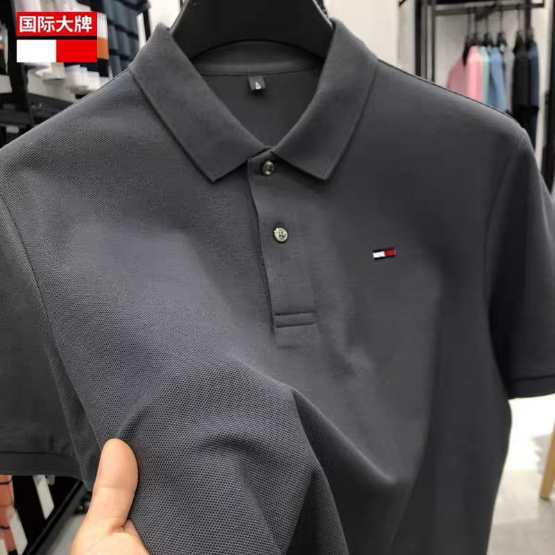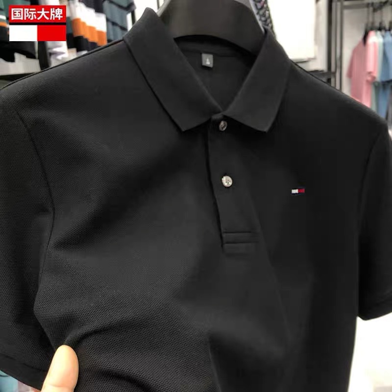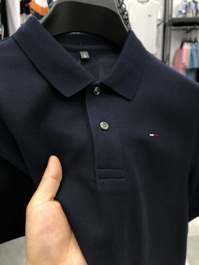 정품 토미 반팔 티셔츠 남자 여름 뉴 루즈 퓨어 코튼 중년 남자 단색 옷깃 폴로 셔츠 탑스토어 가기