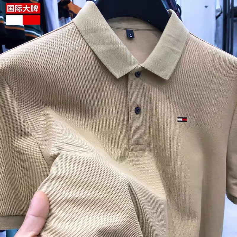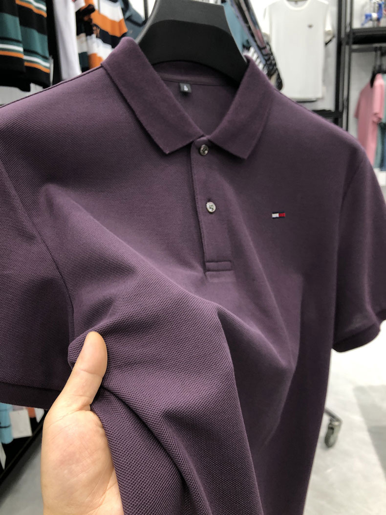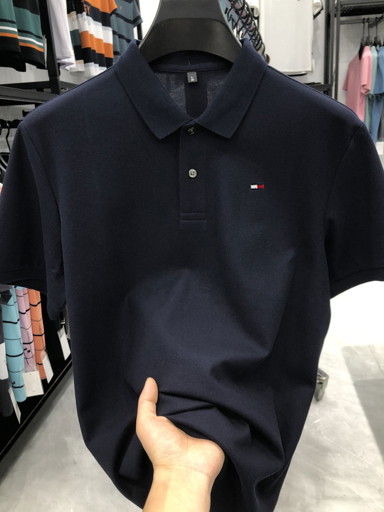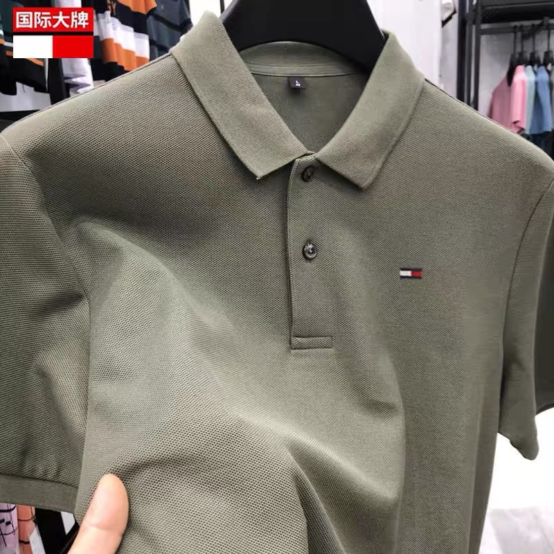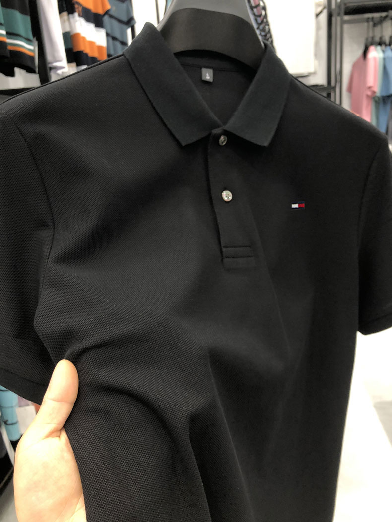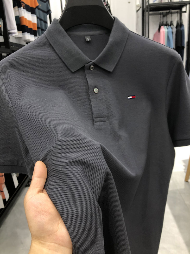 정품 토미 반팔 티셔츠 남자 여름 뉴 루즈 퓨어 코튼 중년 남자 단색 옷깃 폴로 셔츠 탑스토어 가기