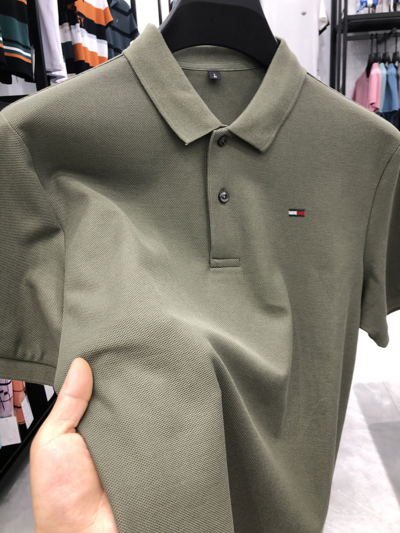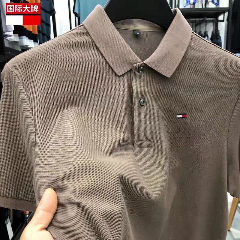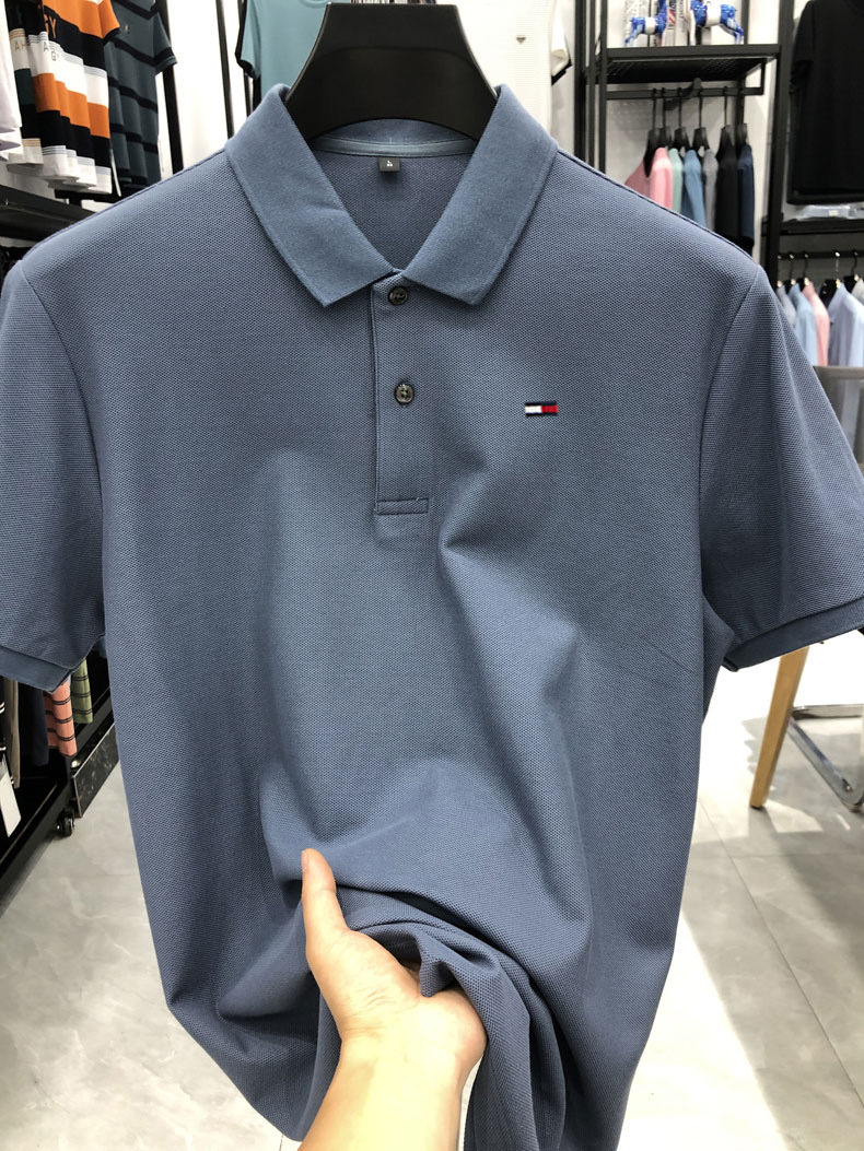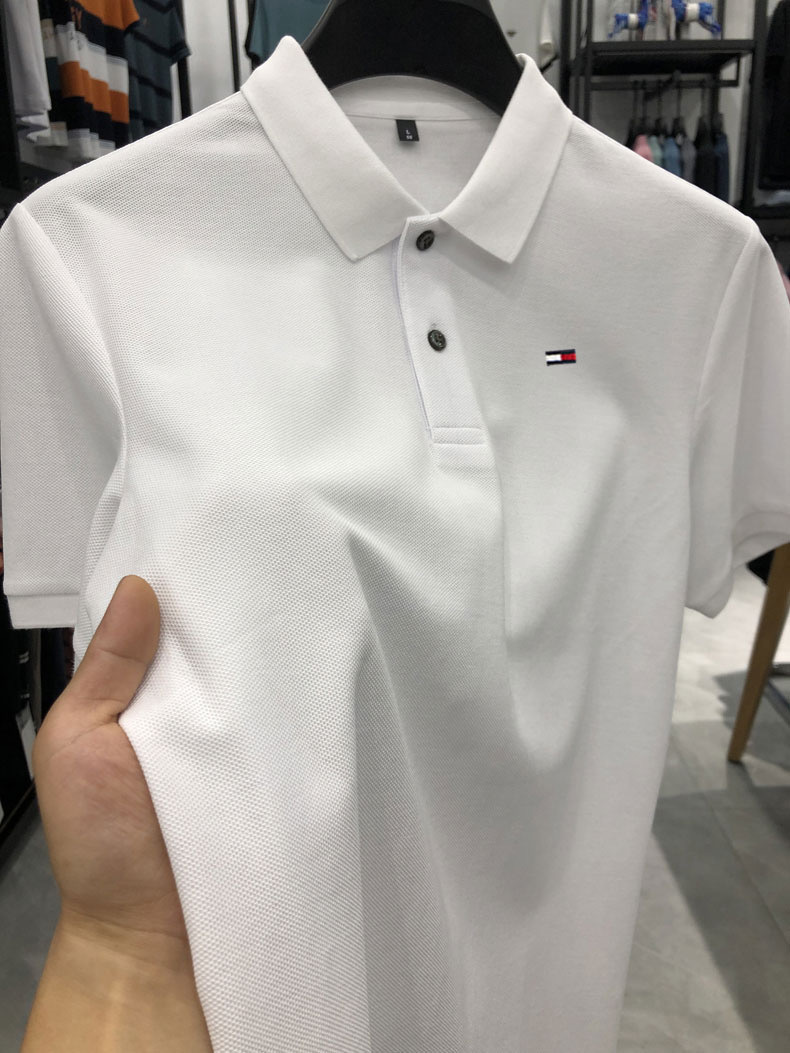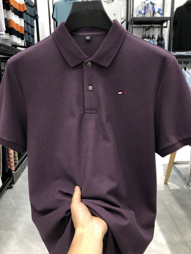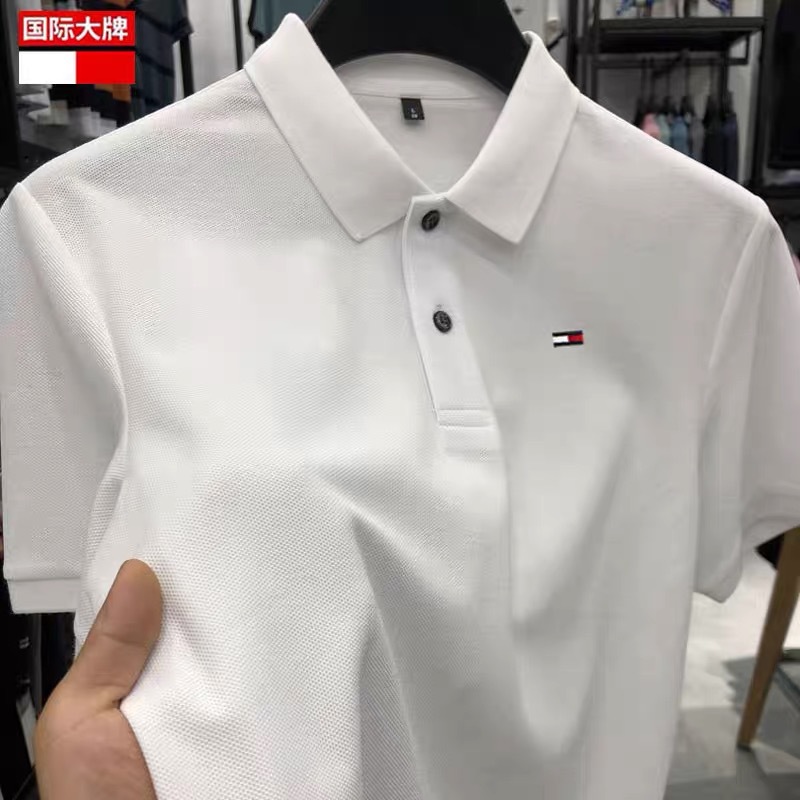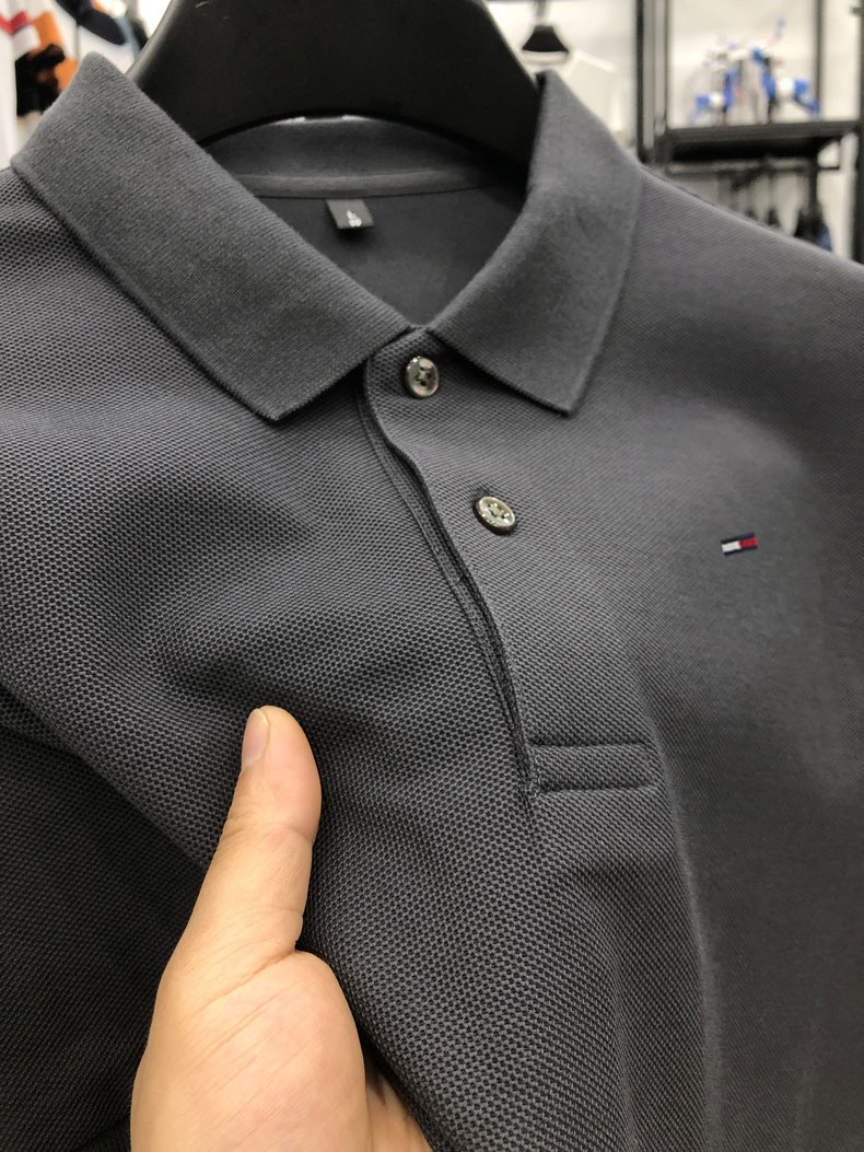 정품 토미 반팔 티셔츠 남자 여름 뉴 루즈 퓨어 코튼 중년 남자 단색 옷깃 폴로 셔츠 탑스토어 가기