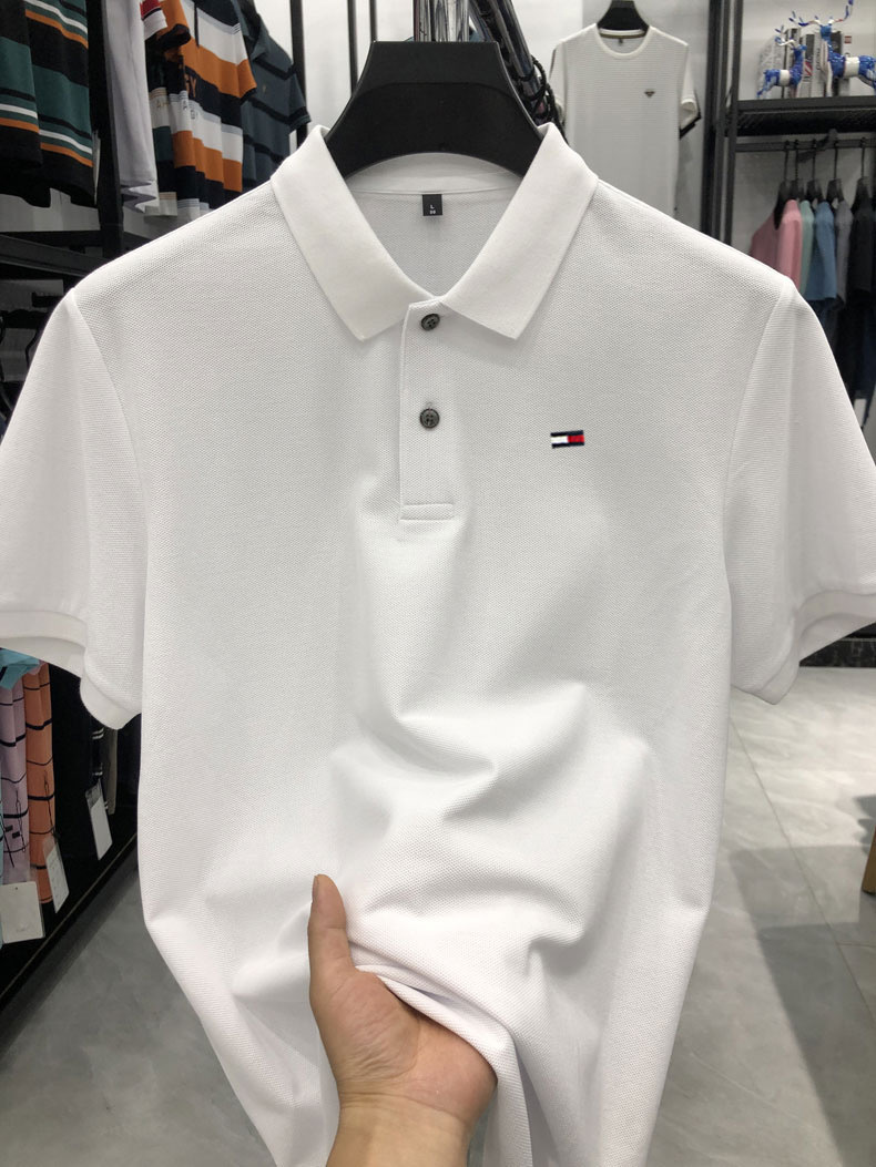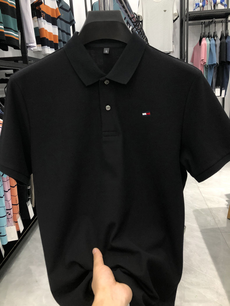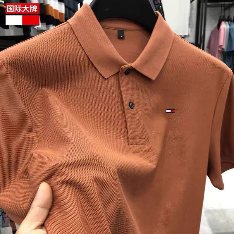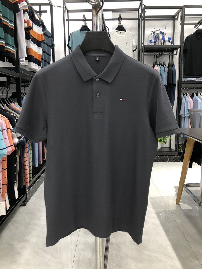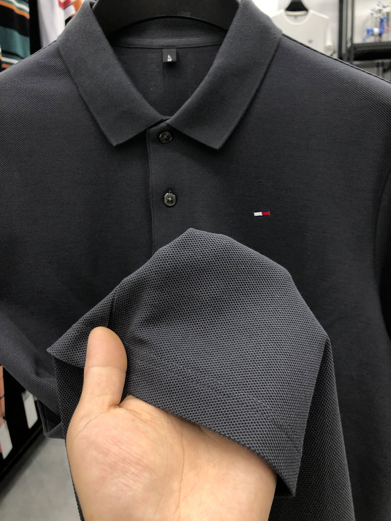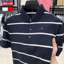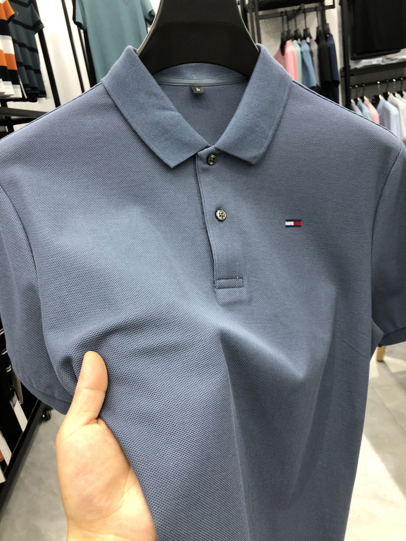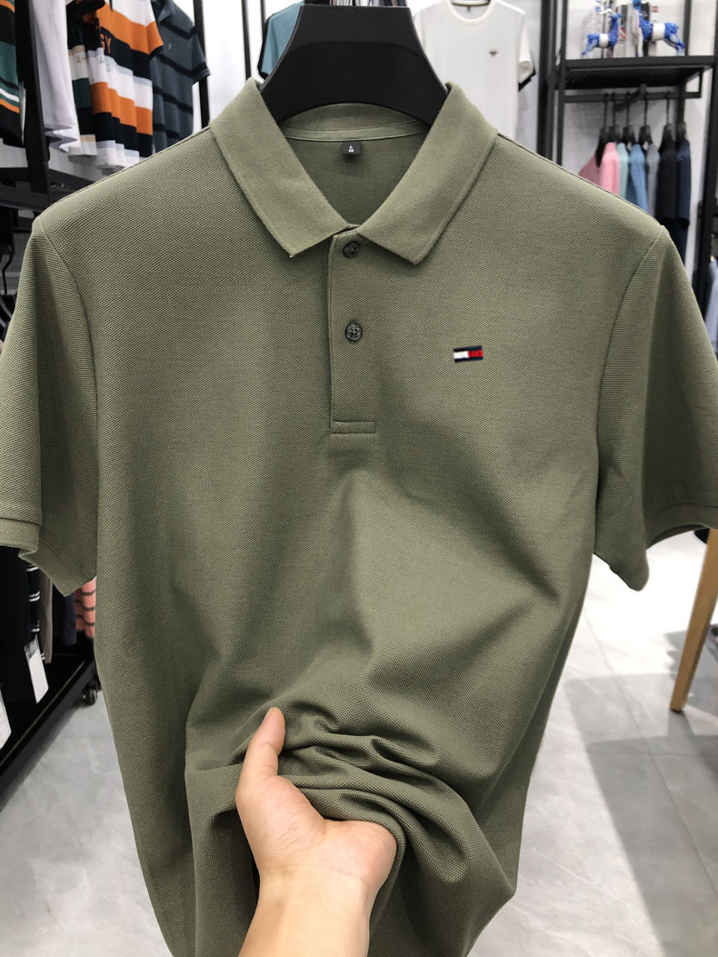 정품 토미 반팔 티셔츠 남자 여름 뉴 루즈 퓨어 코튼 중년 남자 단색 옷깃 폴로 셔츠 탑스토어 가기