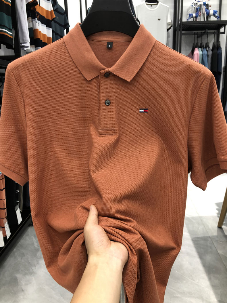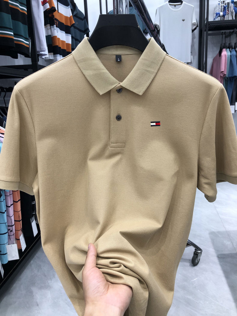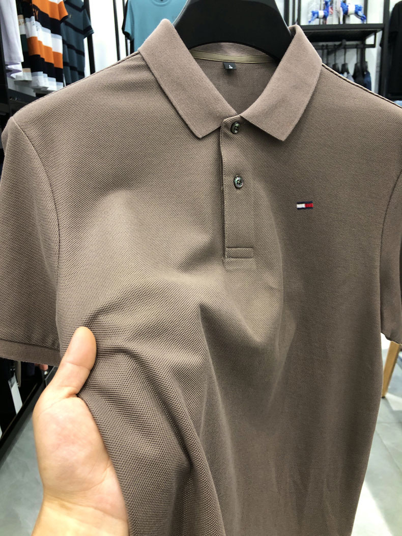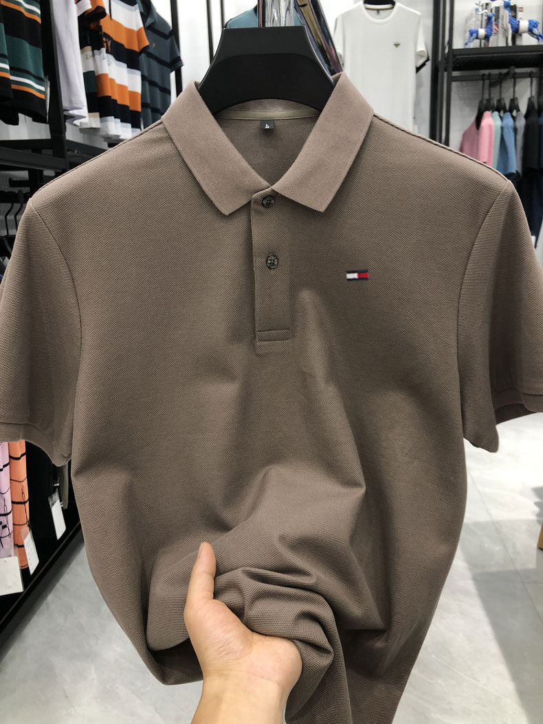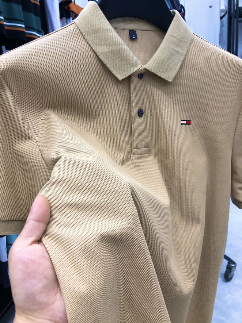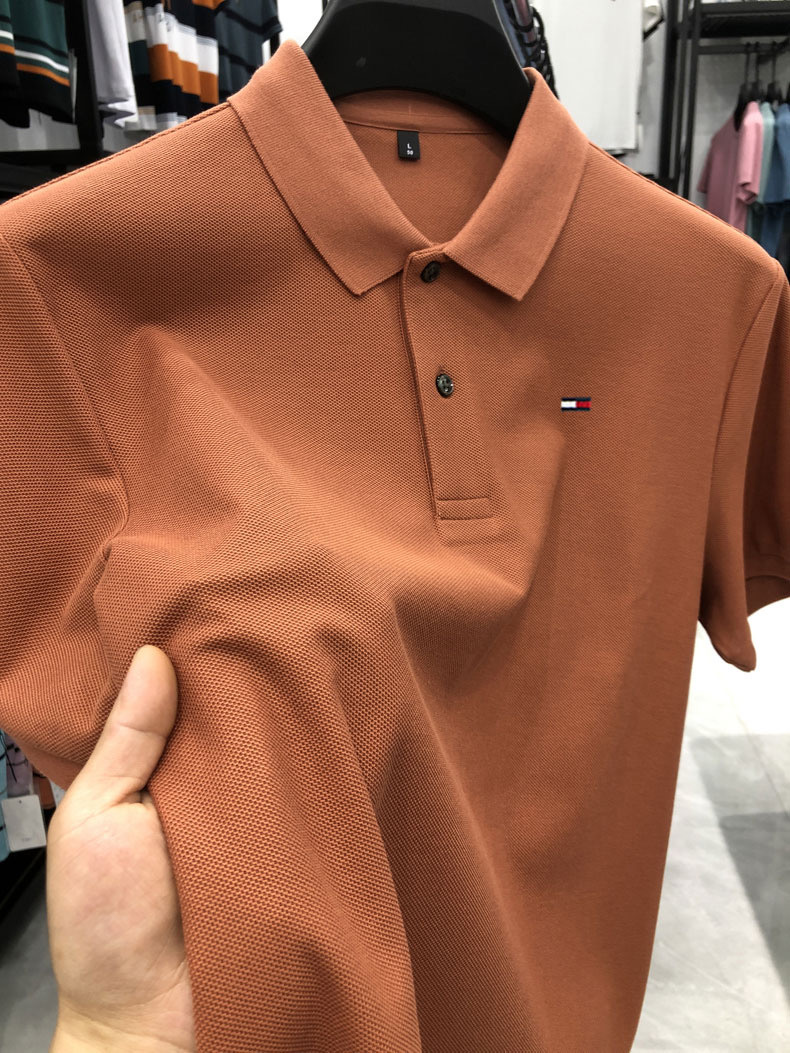 정품 토미 반팔 티셔츠 남자 여름 뉴 루즈 퓨어 코튼 중년 남자 단색 옷깃 폴로 셔츠 탑스토어 가기