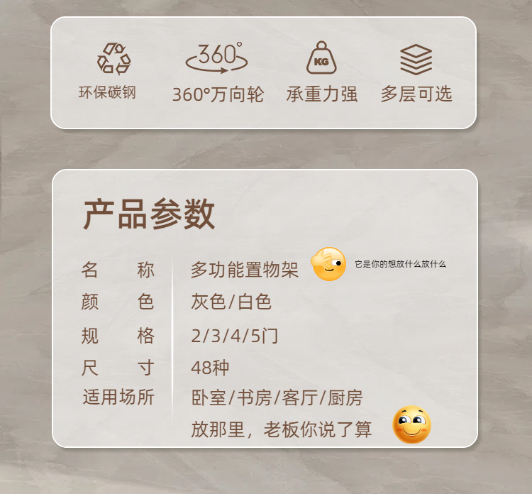 주방 다층 수납장 회색 선반 방충 및 방쥐 수납장 어린이 장난감 수납 선반 두꺼운 재질스토어 가기
