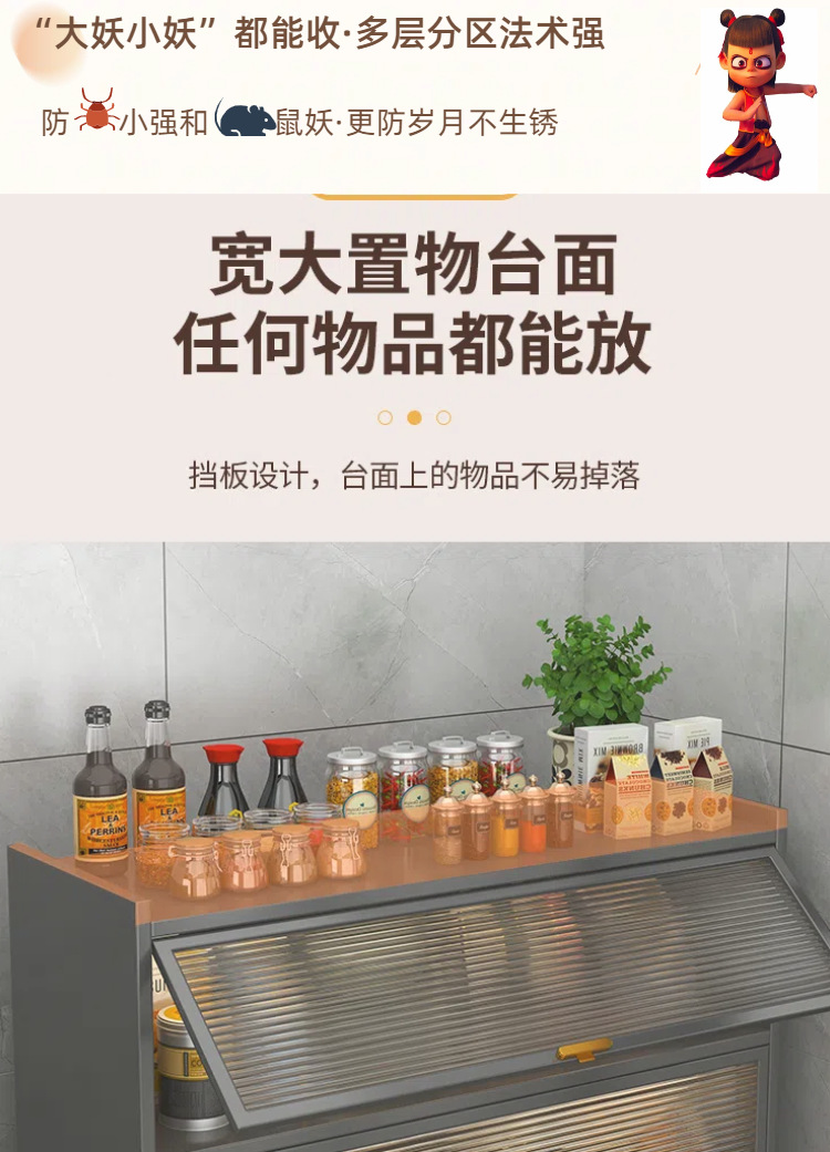 주방 다층 수납장 회색 선반 방충 및 방쥐 수납장 어린이 장난감 수납 선반 두꺼운 재질