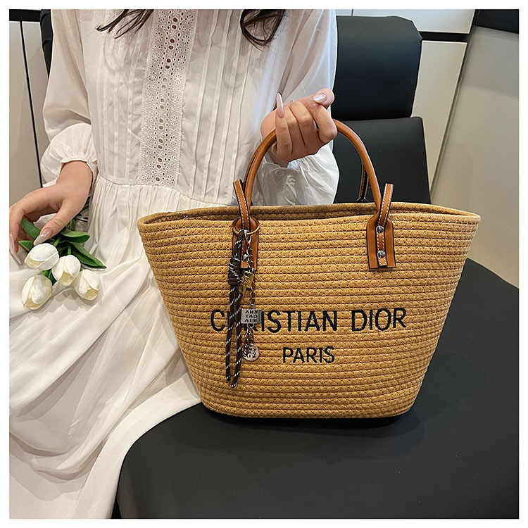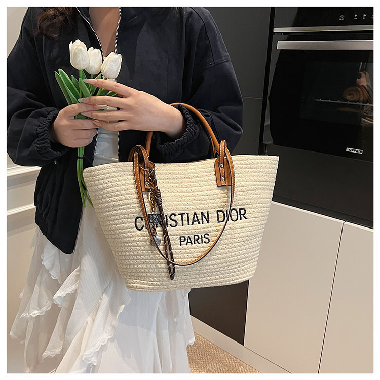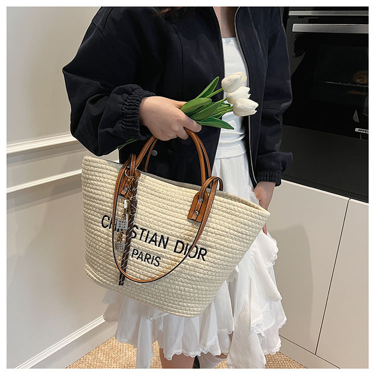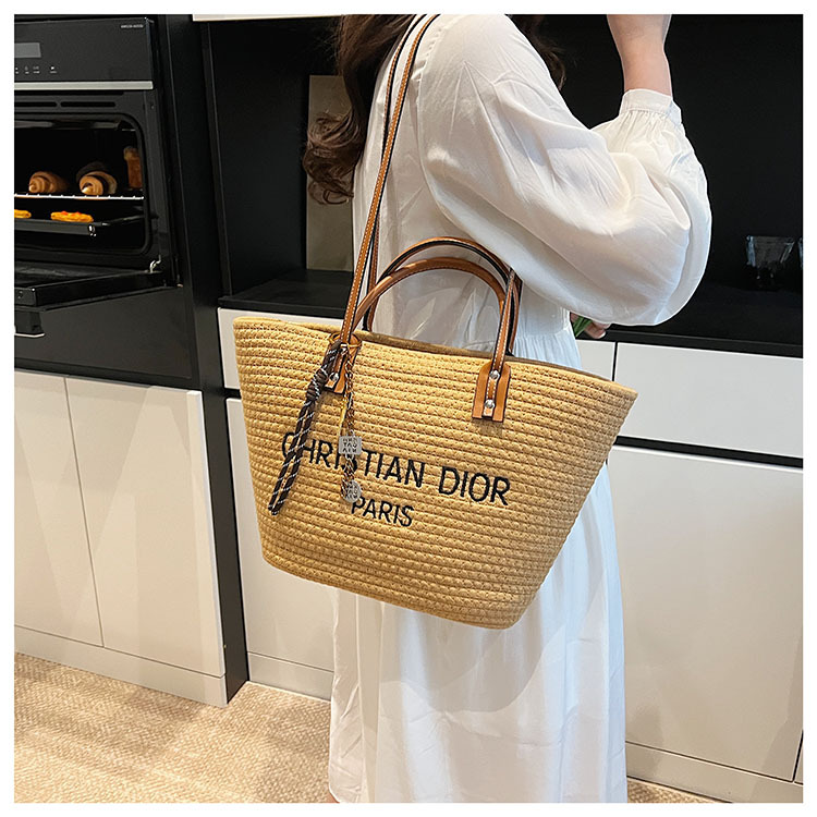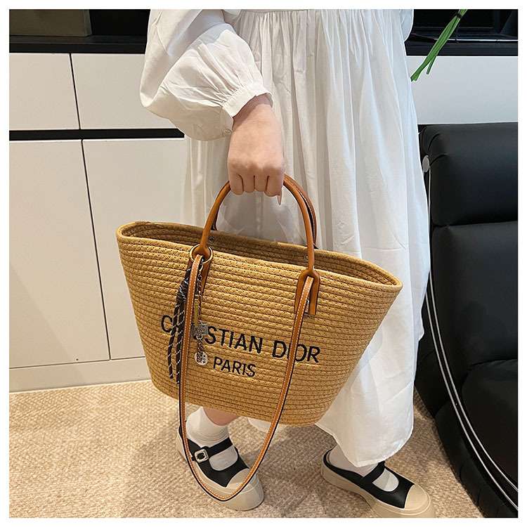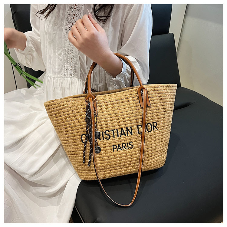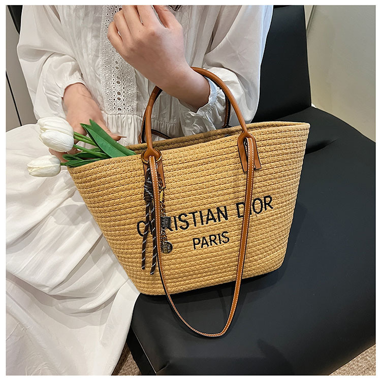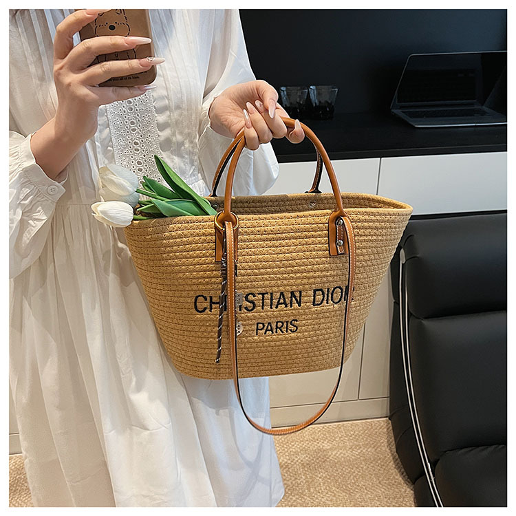 올해 인기있는 짠 가방 여성 2025 새로운 올 매치 서양식 밀짚 짠 가방 대용량 레저 휴일 겨드랑이 가방스토어 가기