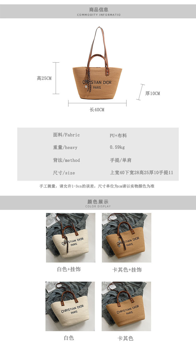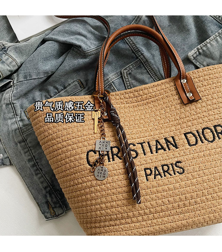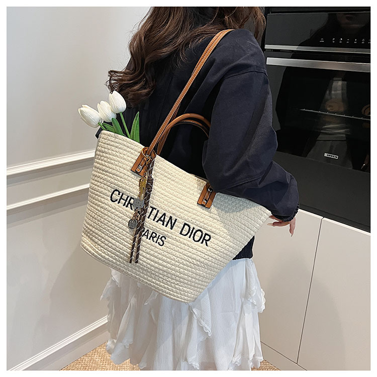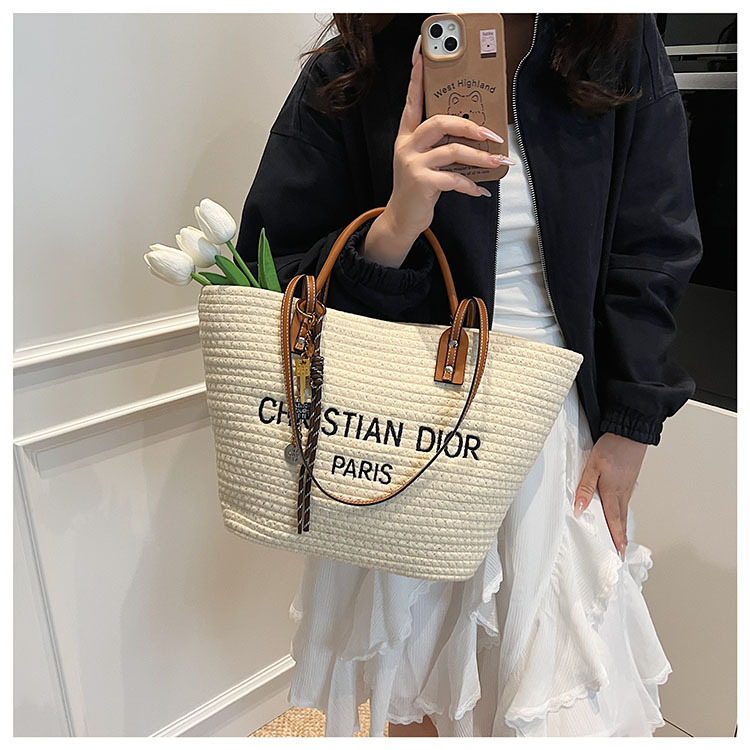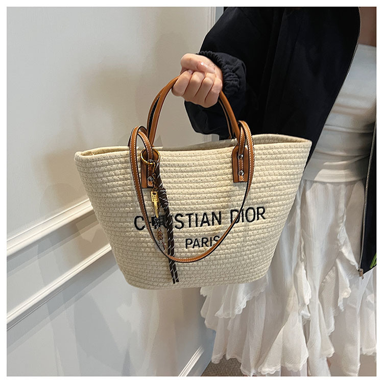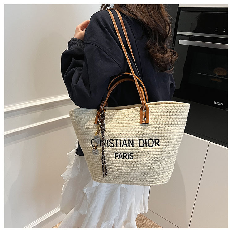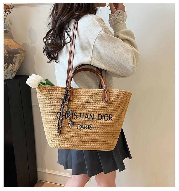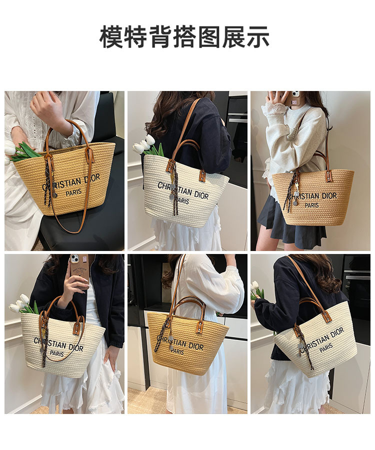 올해 인기있는 짠 가방 여성 2025 새로운 올 매치 서양식 밀짚 짠 가방 대용량 레저 휴일 겨드랑이 가방스토어 가기