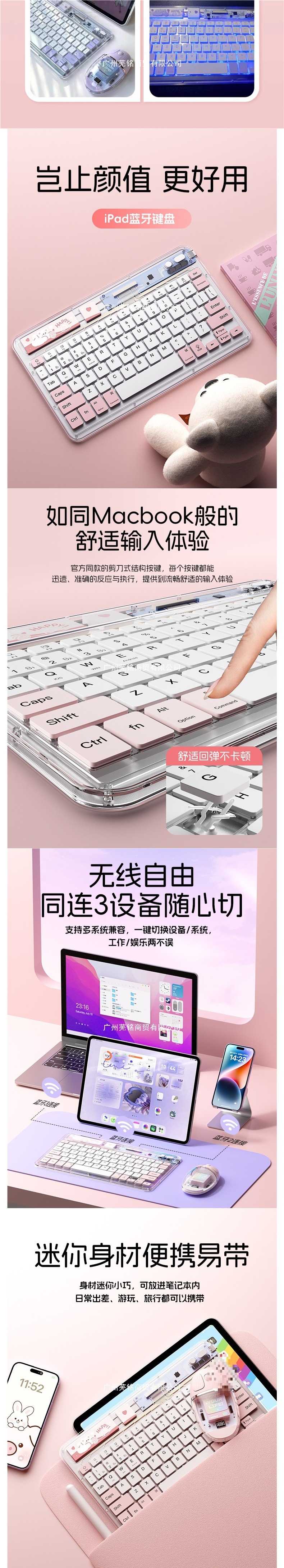 • [투명 핑크 백라이트 버전] 여러 장치 연결 지원❤지연 없음❤가벼운 톤❤얇고 가벼운