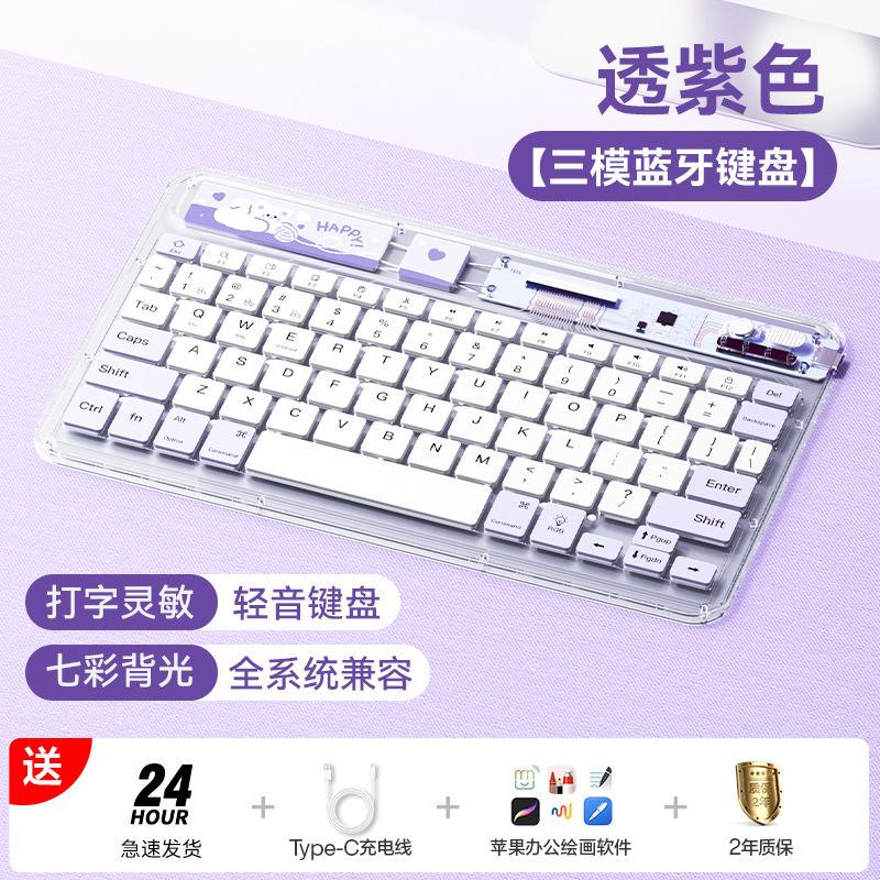 • [투명 보라색 백라이트 버전] 여러 장치 연결 지원❤지연 없음❤가벼운 톤❤얇고 가벼운