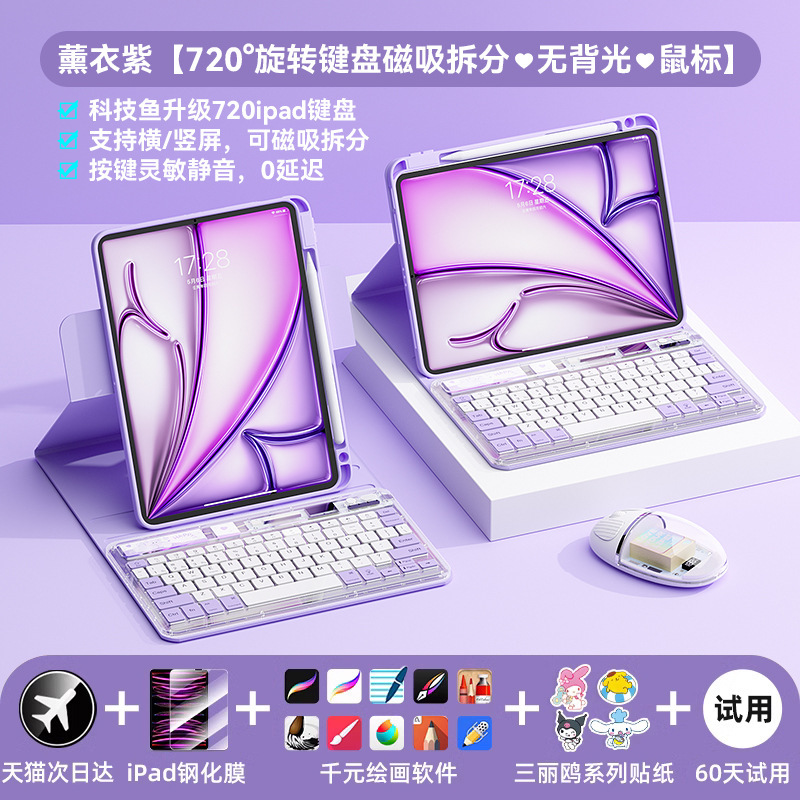 • 18-22 아이패드프로/에어(11/ 10.9inch ) 퍼플【720 ° 회전 보호 케이스 + 투명 보라색 키보드 + 마우스 케이스