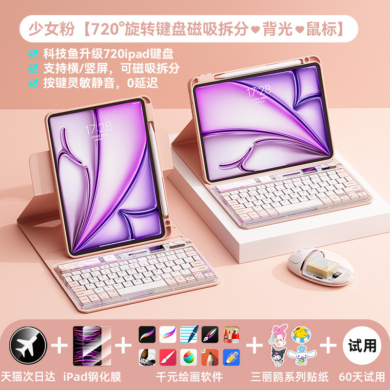 • 18-22 아이패드프로/에어(11/ 10.9inch ) 핑크 [720°회전 보호 케이스 + 투명 핑크 키보드 + 마우스 케이스