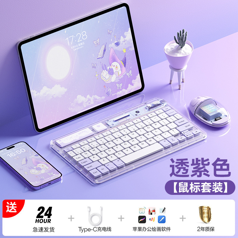 • [투명 보라색 키보드 + 마우스 패키지] 다중 장치 연결 지원❤지연 없음❤가벼운 톤❤얇고 가벼운