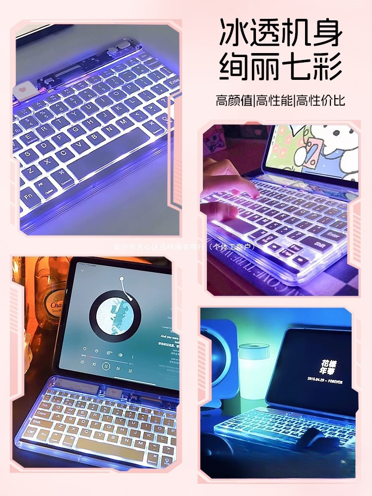 기술 물고기 무선 ipad 블루투스 키보드 얼음 크리스탈 투명 경량 충전식 애플 화웨이 도매에 적합스토어 가기