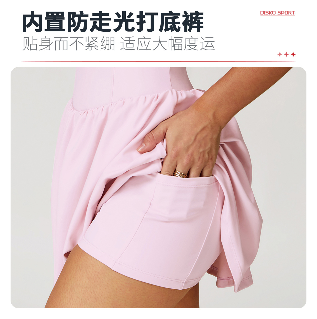 제추앙 클라우드 센스 가짜 2 피스 수직 칼라 원피스 야외 러닝 안티 러닝 라이트베이스 A 라인 스커트 테니스 스커트 9094