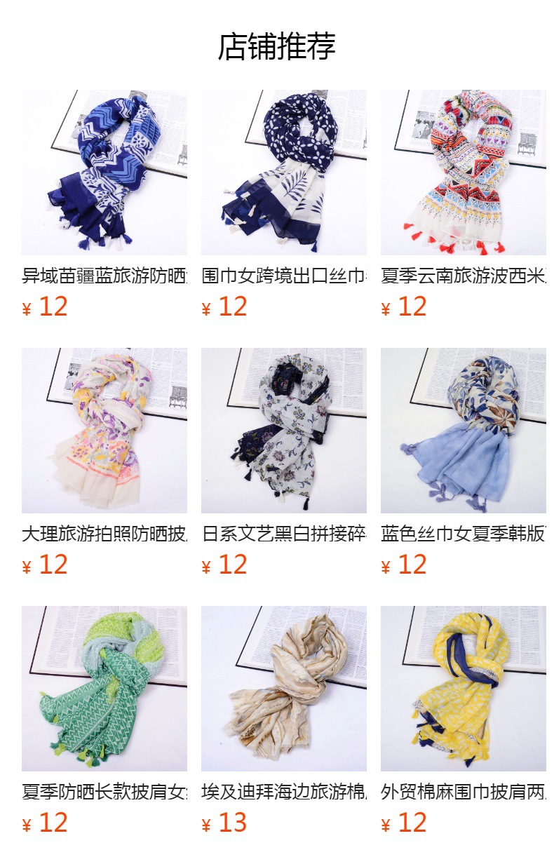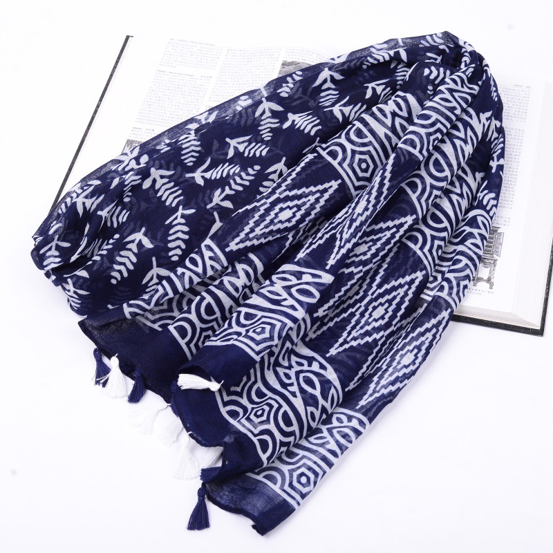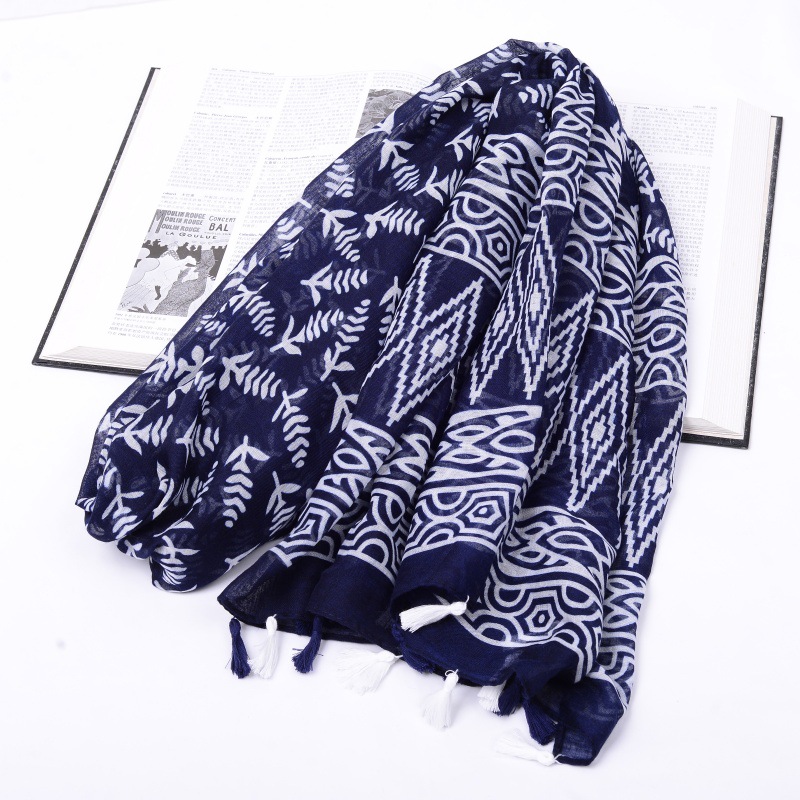 스카프 여성 대외 무역 국경 수출 스카프 민족 봄과 여름 푸른 색과 흰색 도자기 발리 원사 목도리스토어 가기