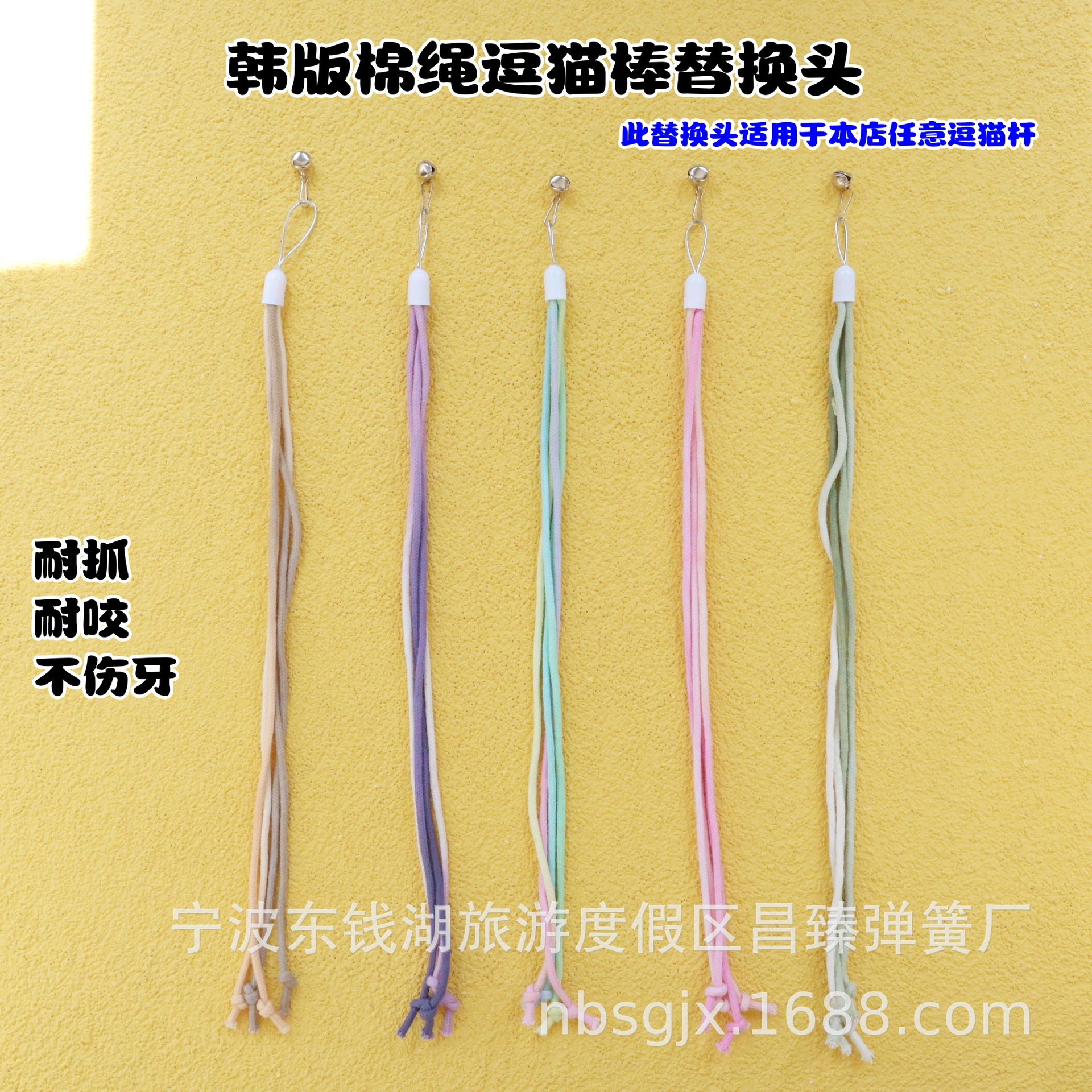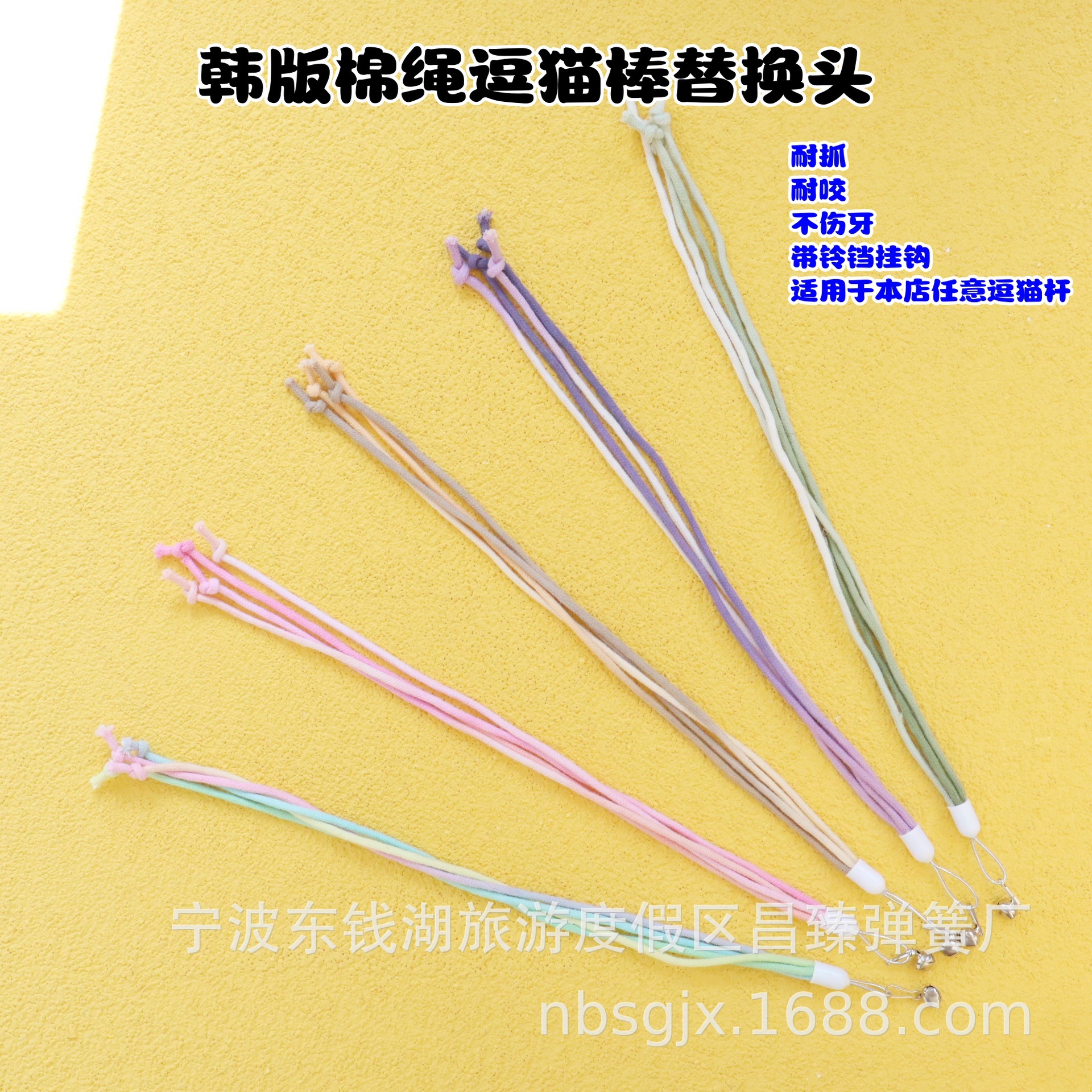 새로운 한국식 추가 4개의 면 로프 고양이 장난감, 교체 가능한 헤드, 물어뜯기 쉽지 않음, 긁힘 방지, 벨 후크 포함
