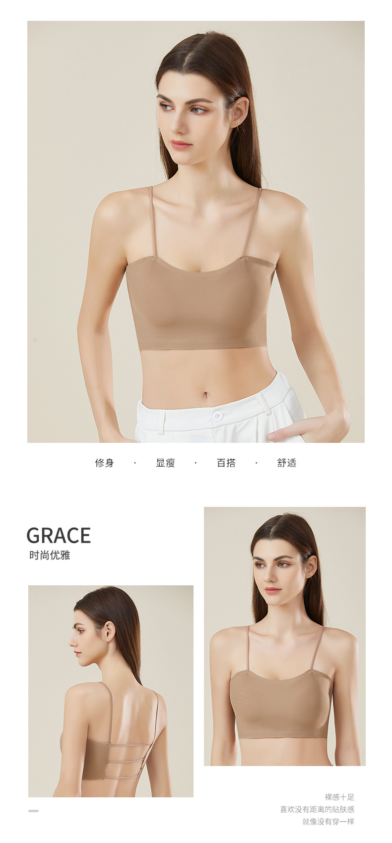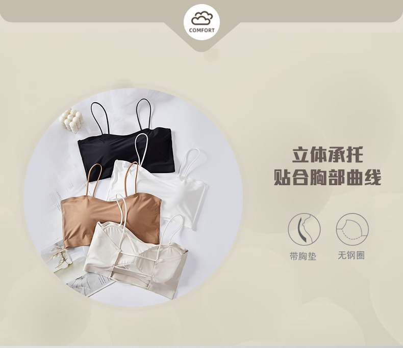 여름 아름다운 뒤 얼음 실크 카미 솔 조끼 학생 안티 워킹 여성 외부 착용 가슴 덮개 및 유방 포장 튜브 탑 1 피스 통기성 백리스