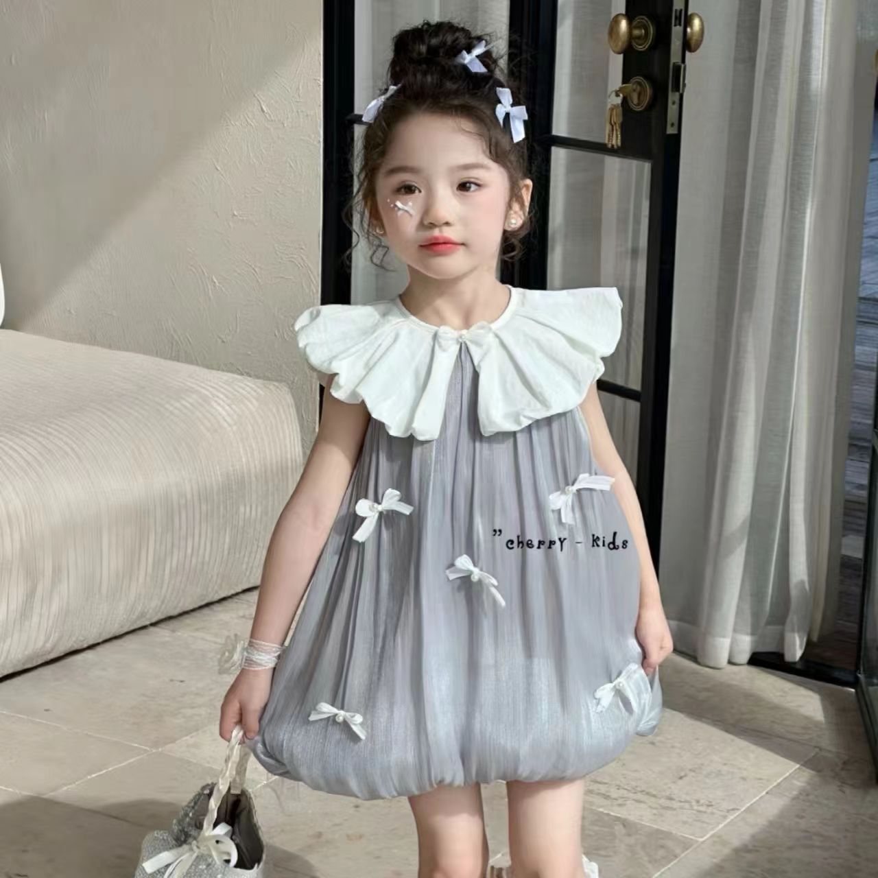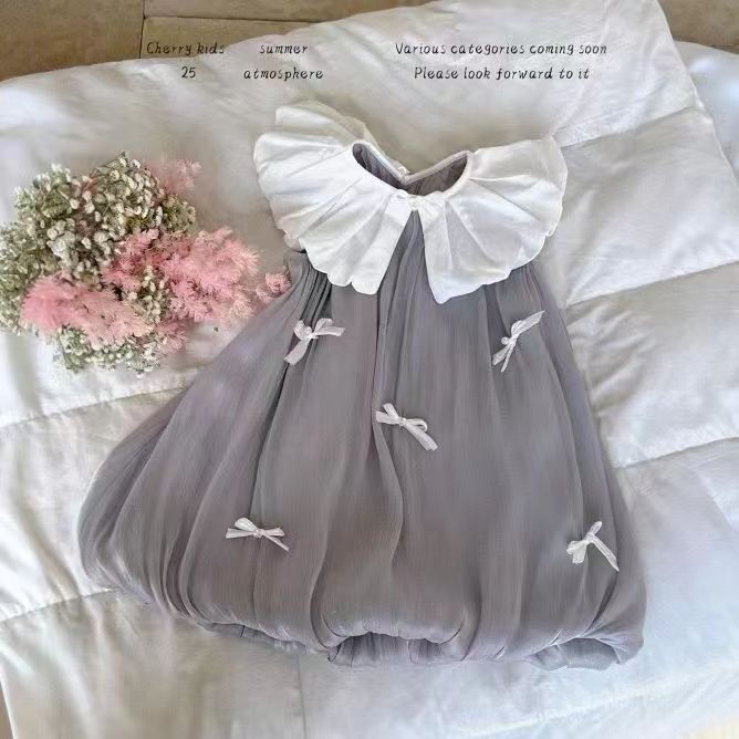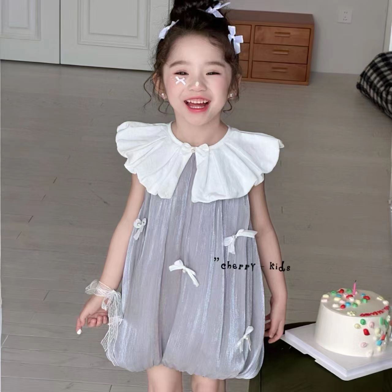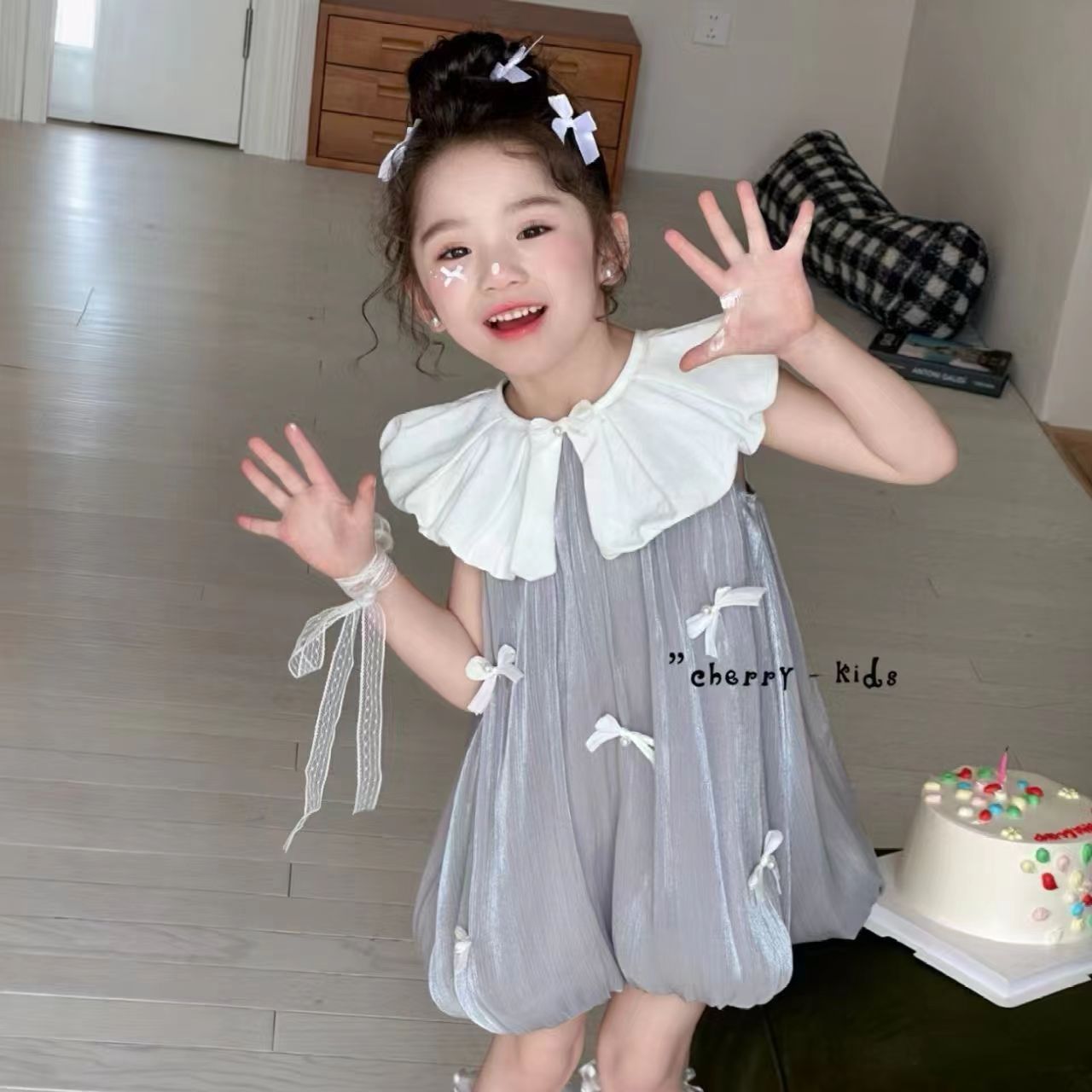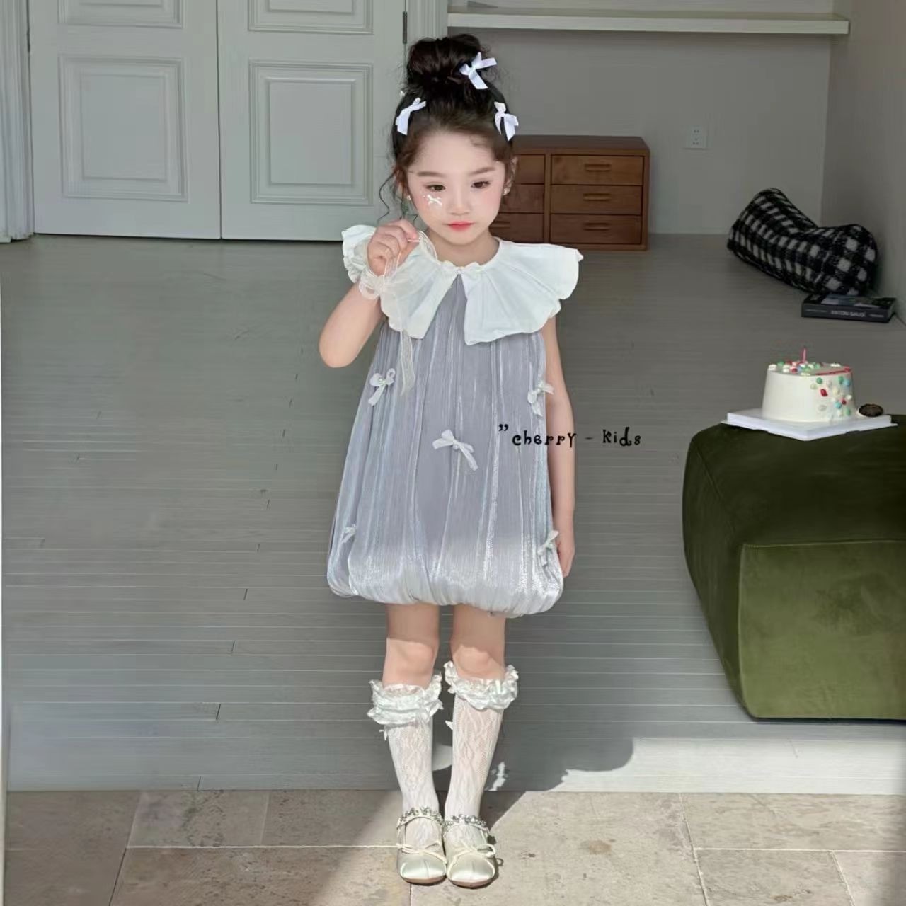 한국식 2025 신형 소녀상 원피스 여름 어린이 서양식 옷깃 활 민소매 공주 원피스 슈퍼 요정스토어 가기