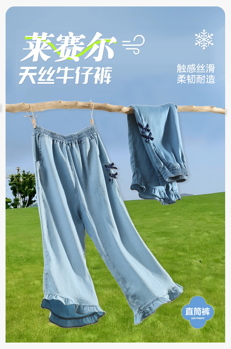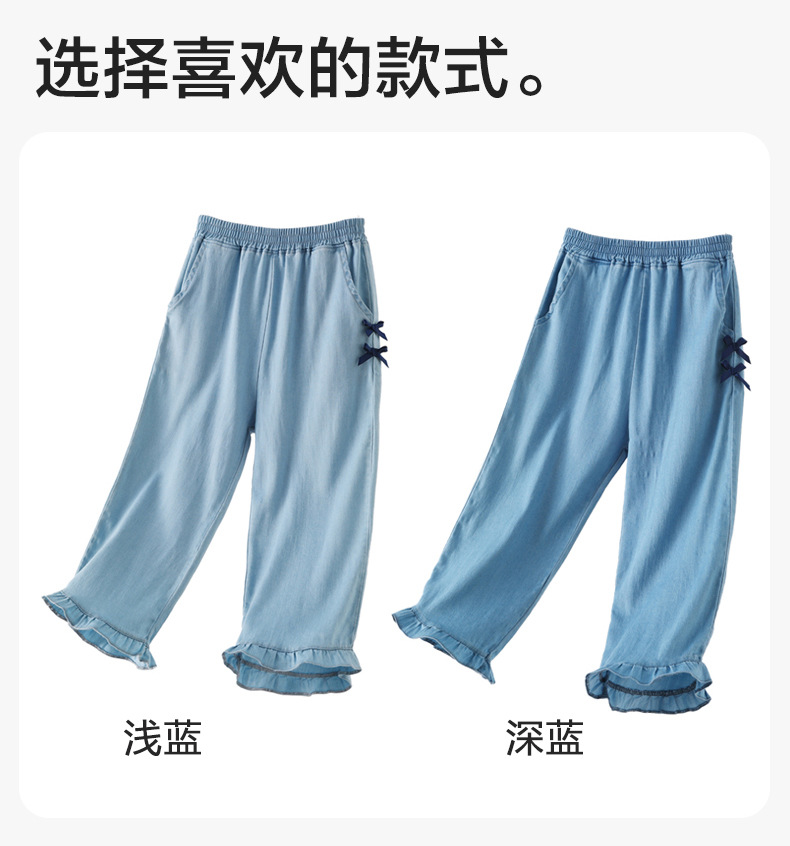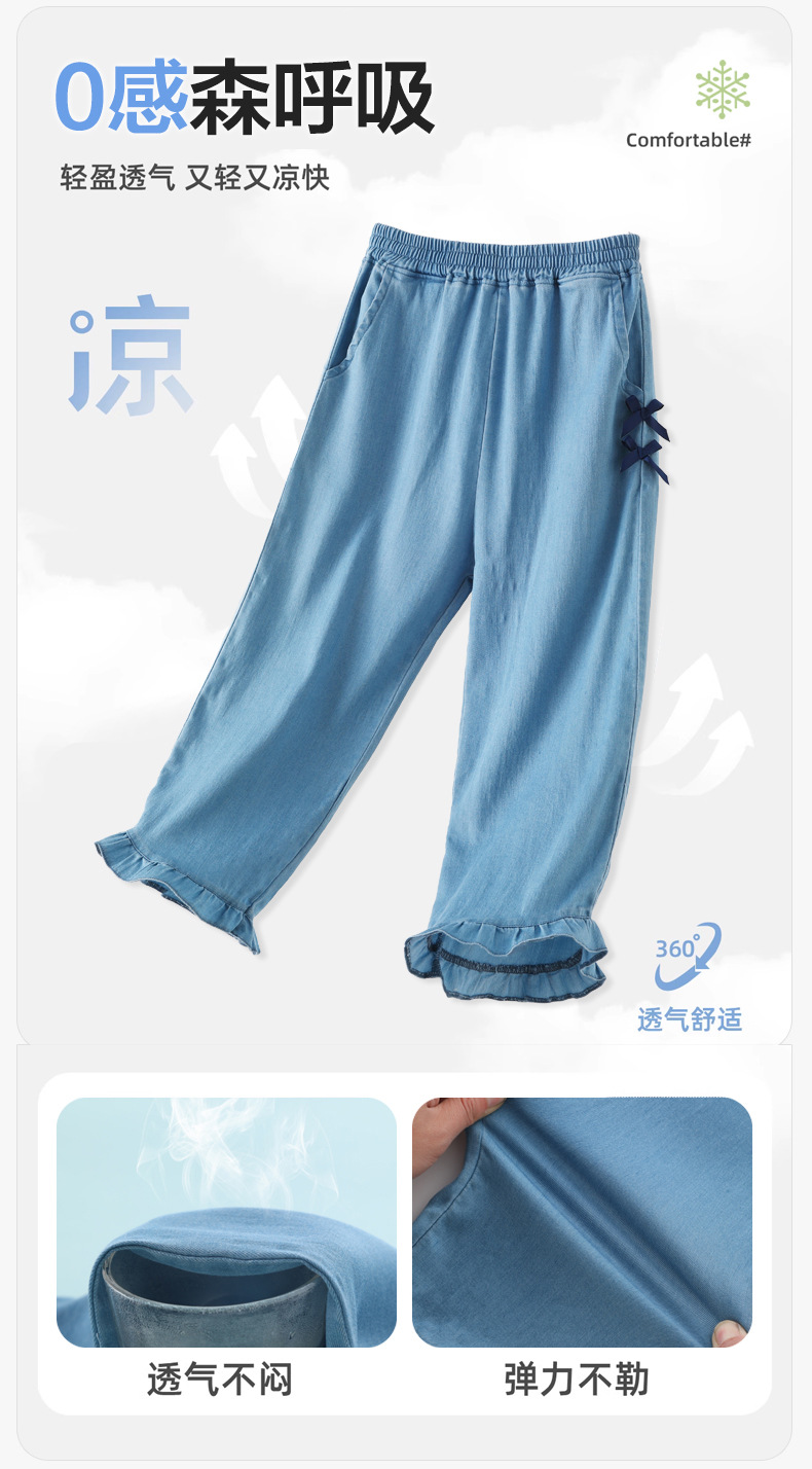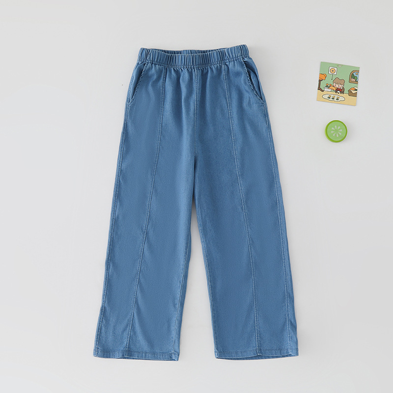 텐셀 걸스 청바지 여름 얇은 Lyocell 어린이 봄 바지 넓은 다리 소녀 플래 바지 어린이 바지 큰 아이들스토어 가기
