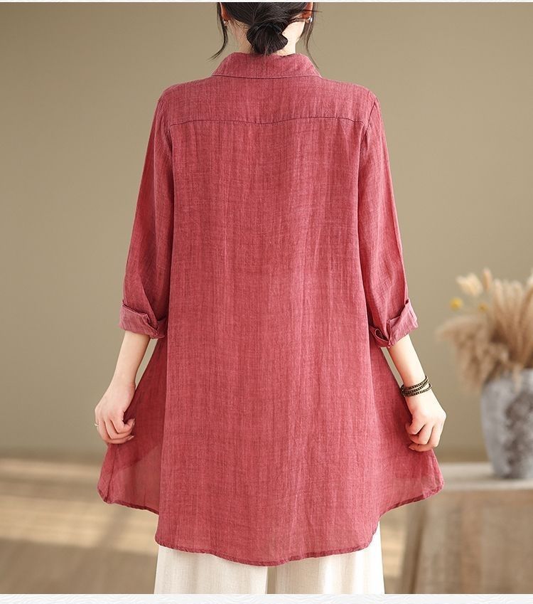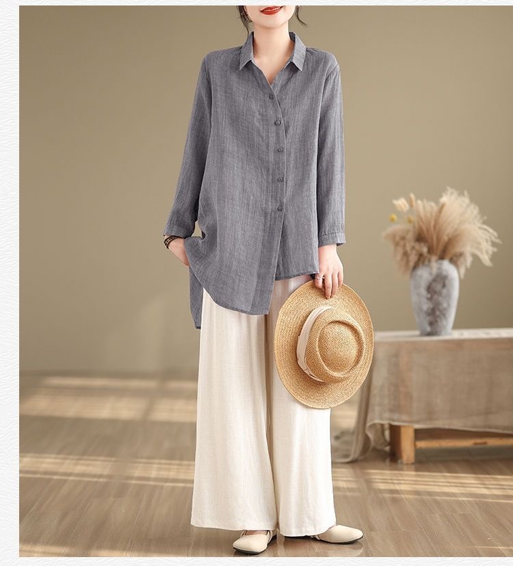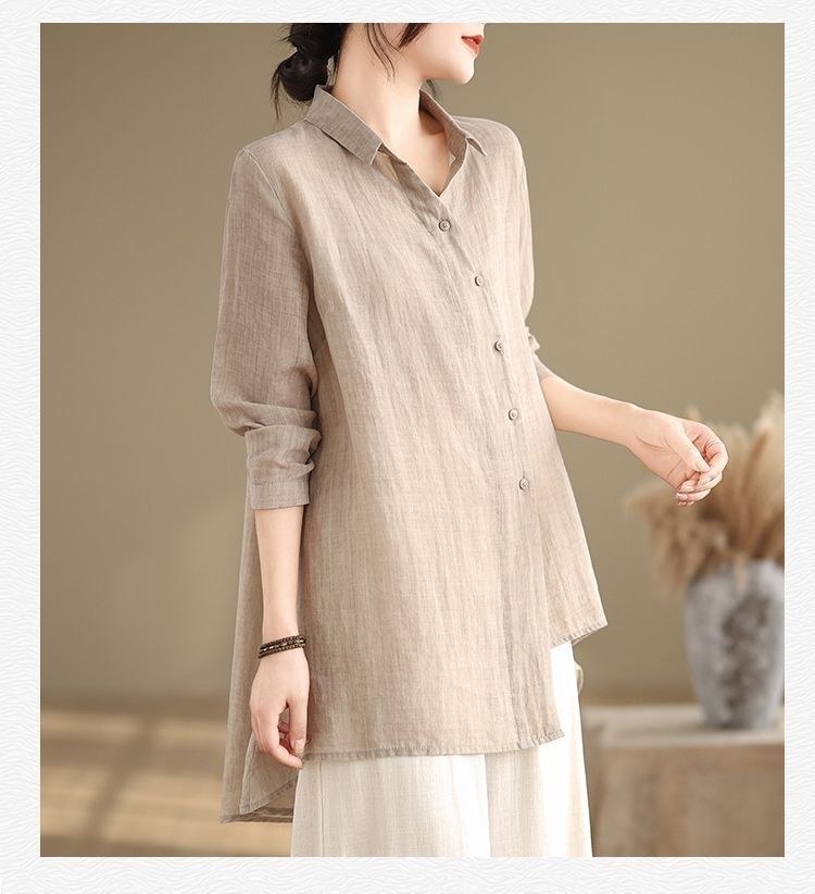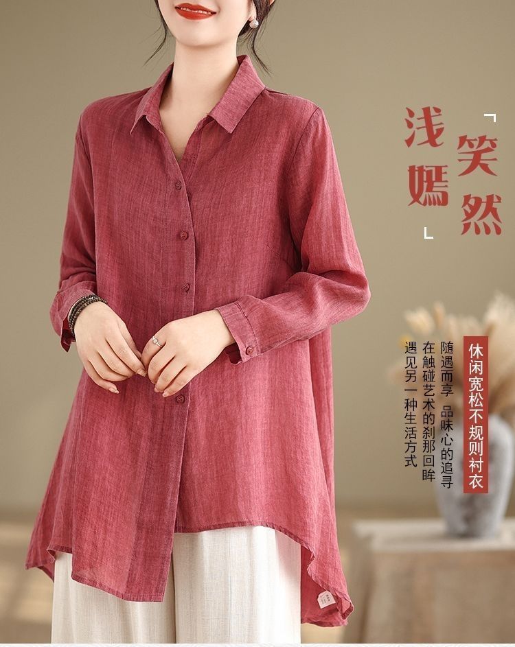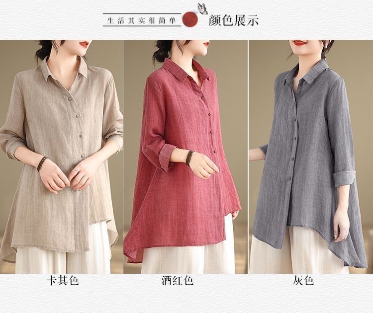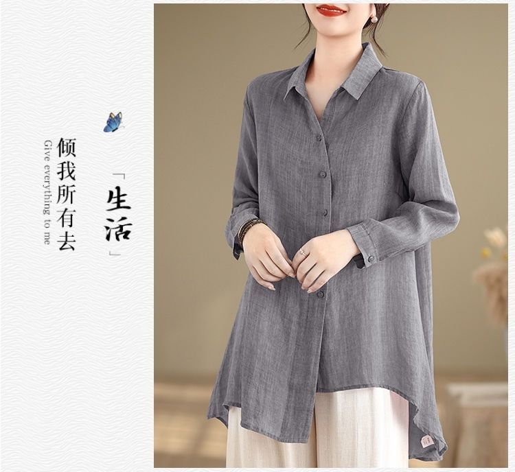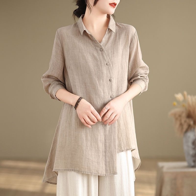 이번 봄과 여름 새로운 중간 길이의 불규칙한 캐주얼 기질 겉옷 셔츠 최고 여성 의류스토어 가기