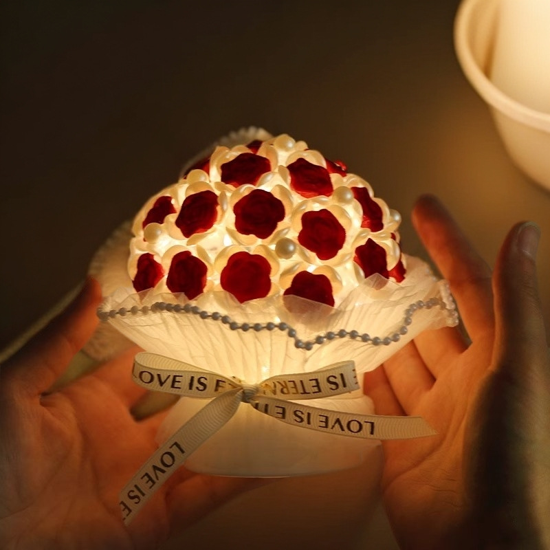 창조적 인 수제 DIY 수제 선물 재료 가방 여자 친구 로즈 나이트 라이트를 보내기 위해 자신의 선물을 만듭니다.