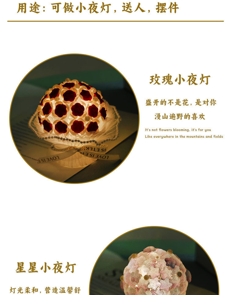 창조적 인 수제 DIY 수제 선물 재료 가방 여자 친구 로즈 나이트 라이트를 보내기 위해 자신의 선물을 만듭니다.스토어 가기
