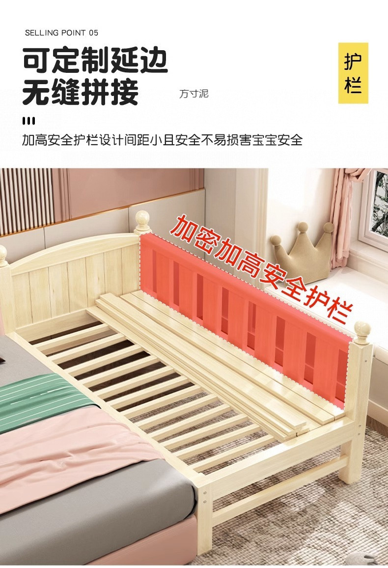 단단한 나무 아기 접합 침대 플러스 광대역 보호대 소년 및 소녀 싱글 침대 사이드 침대 어린이 접합 큰 침대 공급 체인스토어 가기