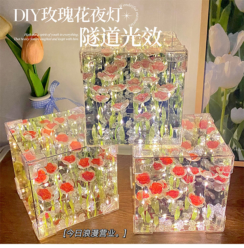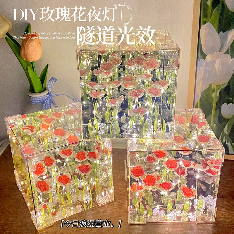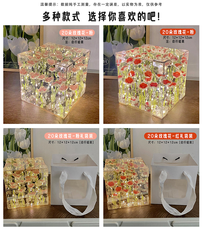 수제 DIY 루빅스 큐브 로즈 나이트 라이트 크리에이티브 소재 패키지 전체 세트 520 생일 선물 커플 여자 친구스토어 가기