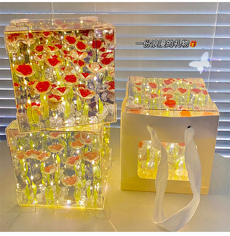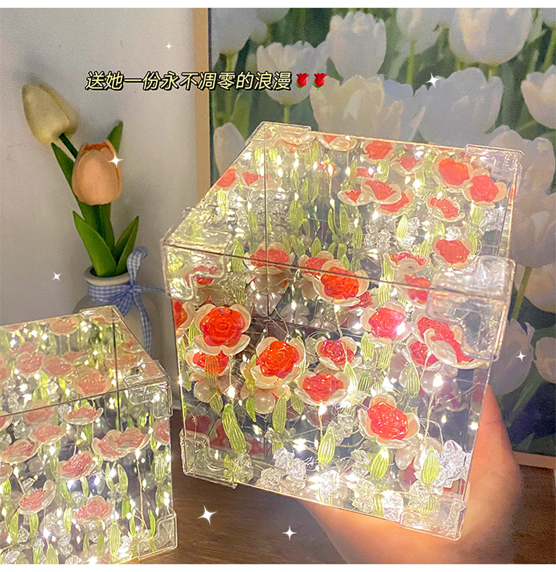 수제 DIY 루빅스 큐브 로즈 나이트 라이트 크리에이티브 소재 패키지 전체 세트 520 생일 선물 커플 여자 친구