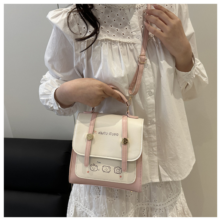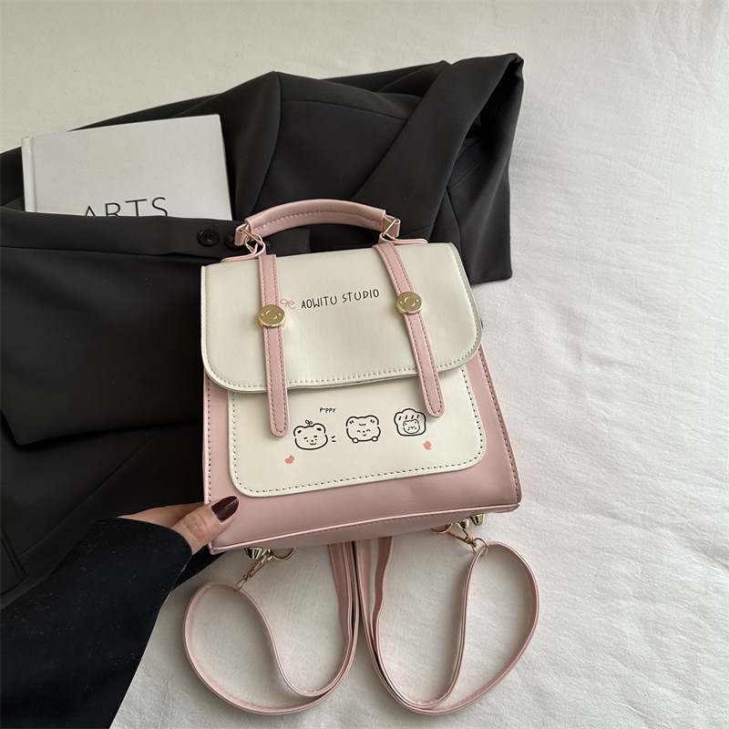 2025 대용량 가방 여성의 새로운 영국 스타일 레트로 버클 디자인 배낭 학생 크로스 바디 통근 스퀘어 백스토어 가기