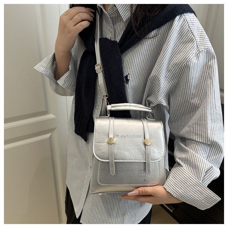 2025 대용량 가방 여성의 새로운 영국 스타일 레트로 버클 디자인 배낭 학생 크로스 바디 통근 스퀘어 백