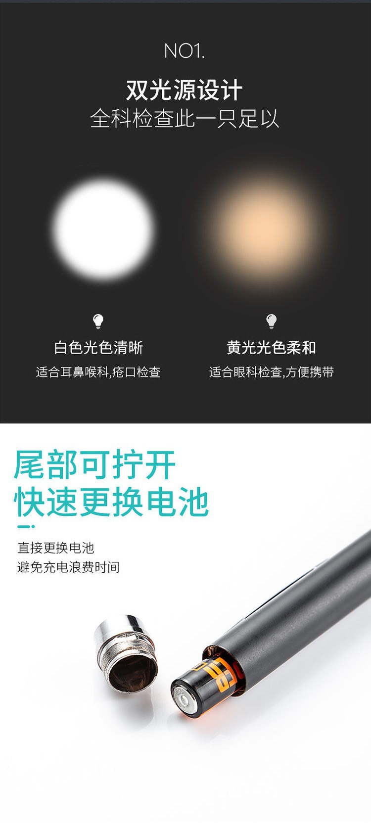 가늠자 안과 이비인후과 구강 학생 검진 펜 램프로 손전등 노란색 흰색 빛 학생 가정 아침 검사