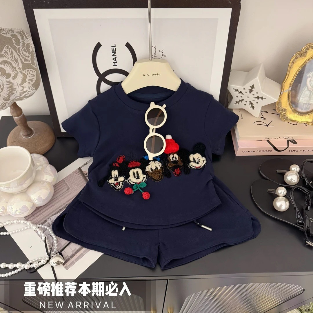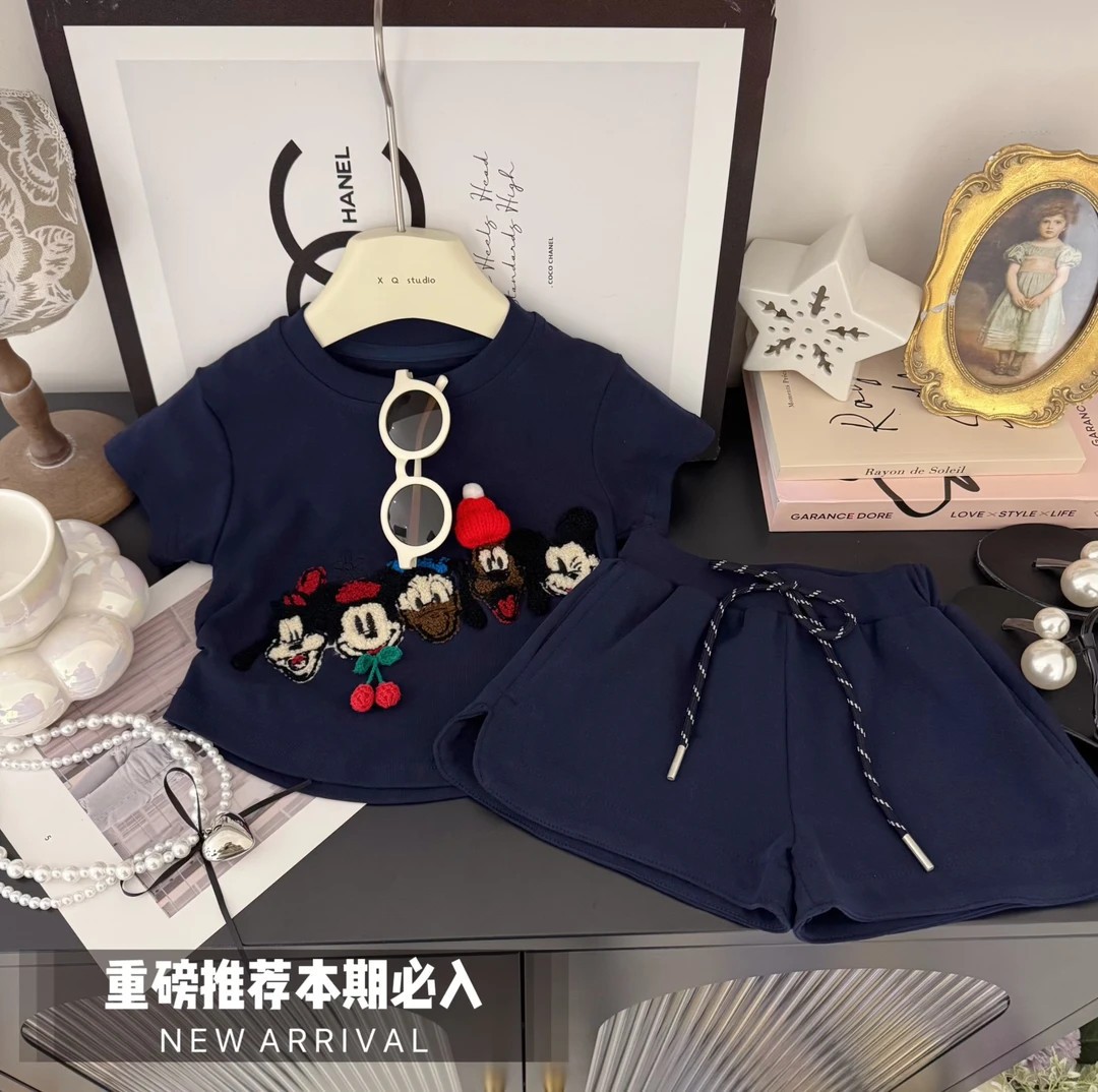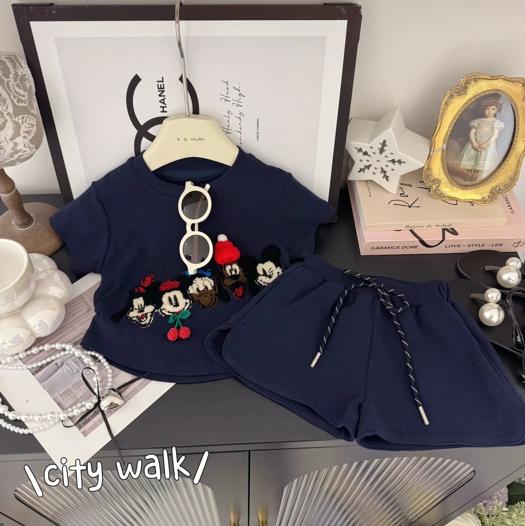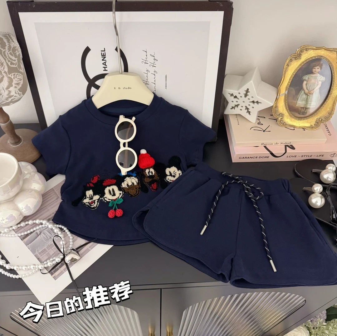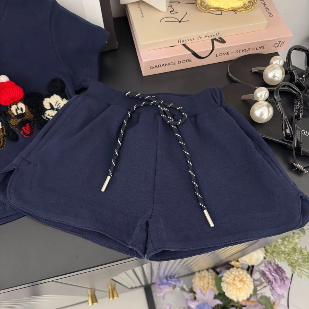 [닝리] 여자 2025 년 여름 새 3 차원 만화 타월 자수 티셔츠 명암 컬러 로프 반바지 유행 세트스토어 가기