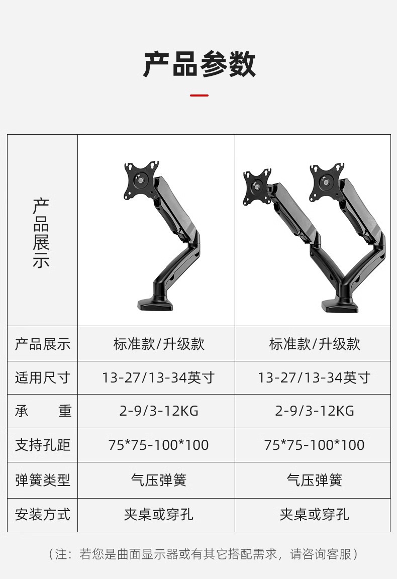 • 스크린 1개, 브라켓 1개, 블랙 - [모니터 34inch 이내 - 노트북 23inch 이내] 내하중 암 10KG