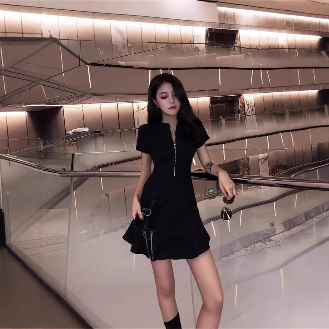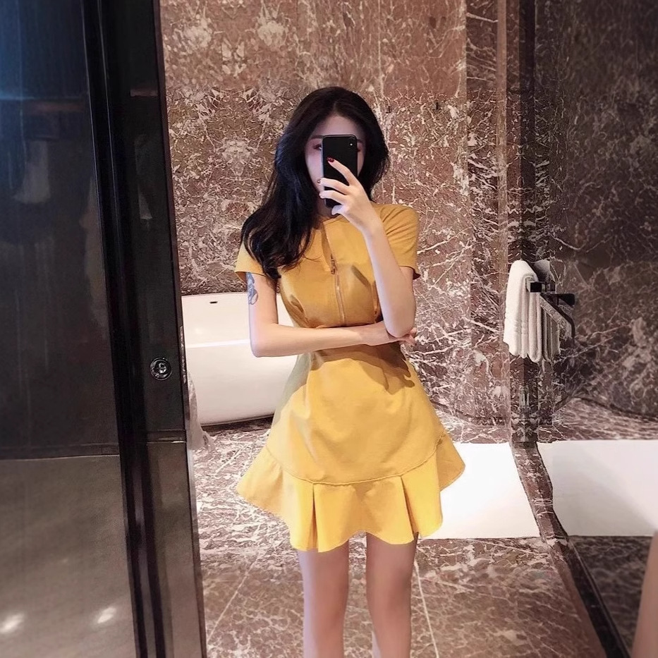 2025 새로운 여름 우아한 슬리밍 Ruffled 허리 노란색 스커트 여성 지퍼 헵번 높은 허리 검은 원피스스토어 가기
