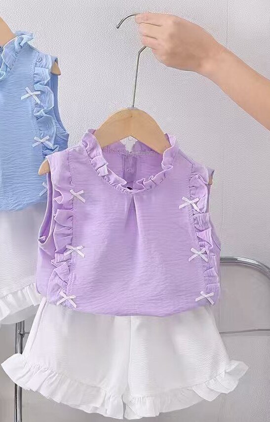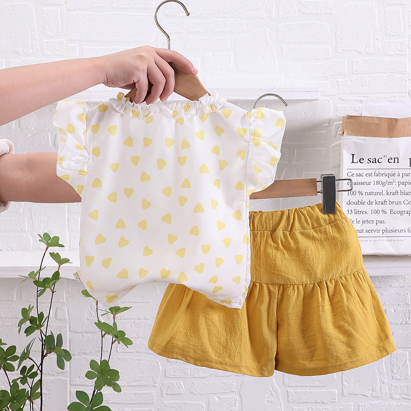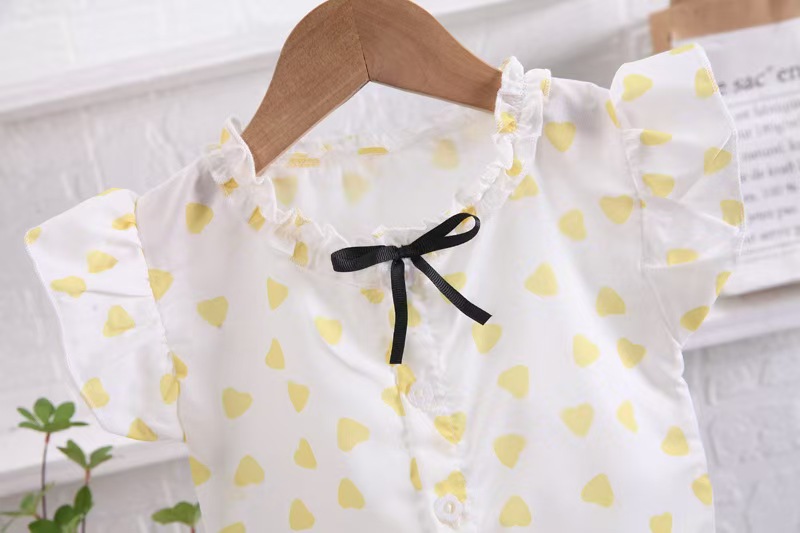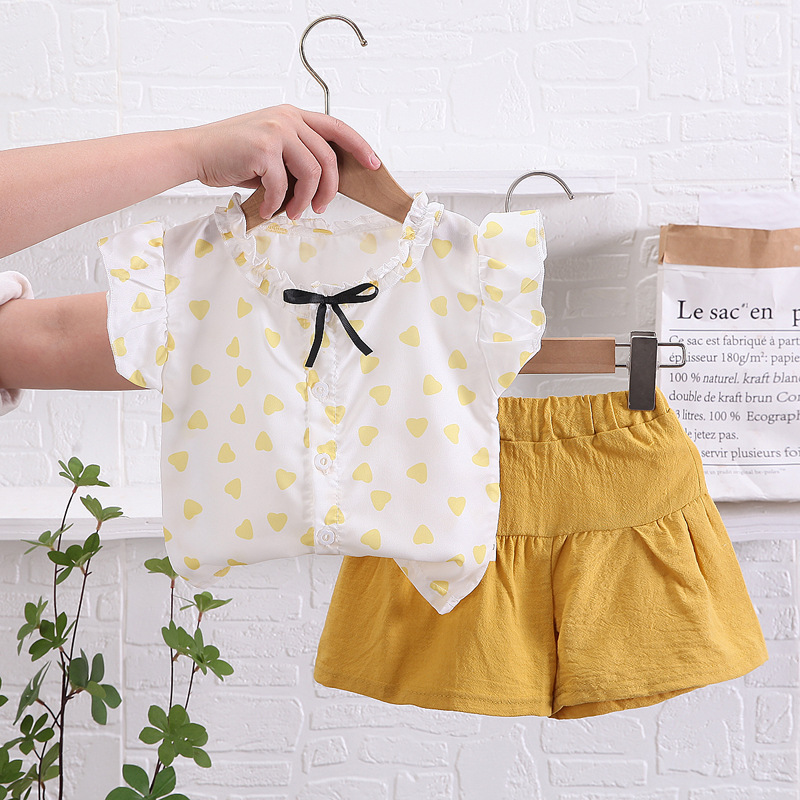 국경 간 여름 아기 소녀 세트 달콤한 아기 사랑 쉬폰 짧은 소매 귀여운 소녀 작은 신선한 반바지 도매