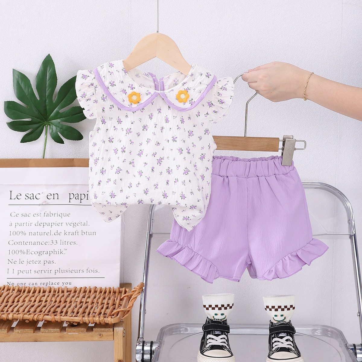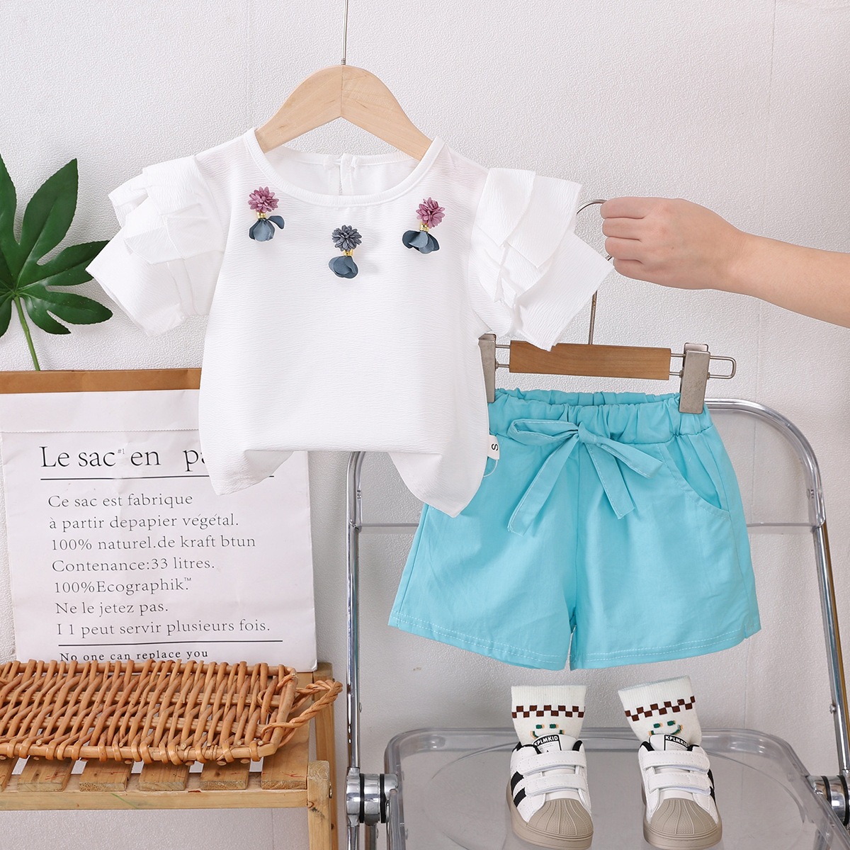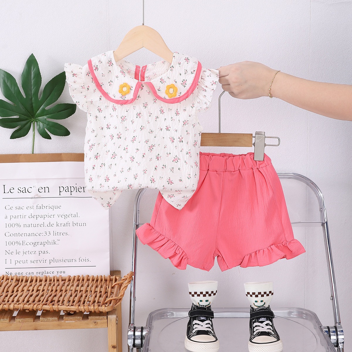 국경 간 여름 아기 소녀 세트 달콤한 아기 사랑 쉬폰 짧은 소매 귀여운 소녀 작은 신선한 반바지 도매스토어 가기