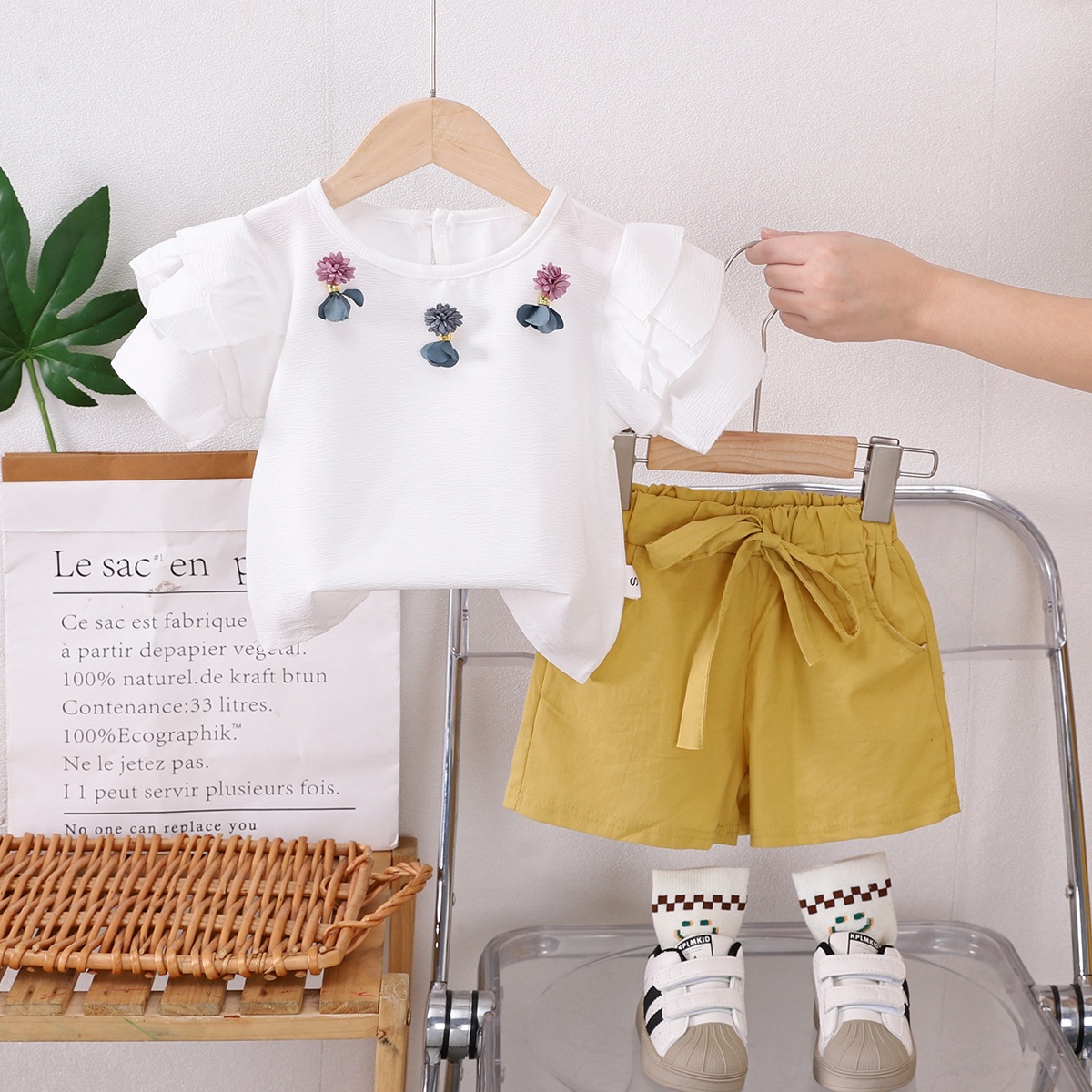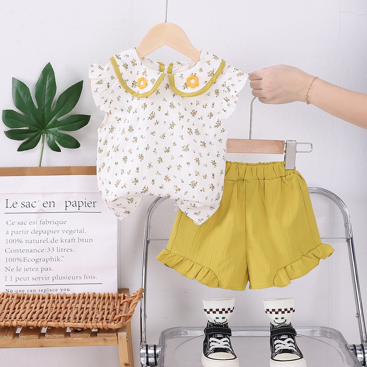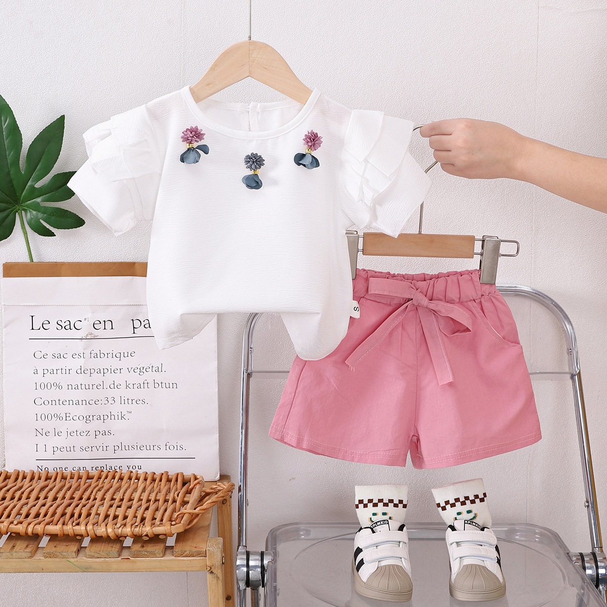 국경 간 여름 아기 소녀 세트 달콤한 아기 사랑 쉬폰 짧은 소매 귀여운 소녀 작은 신선한 반바지 도매스토어 가기