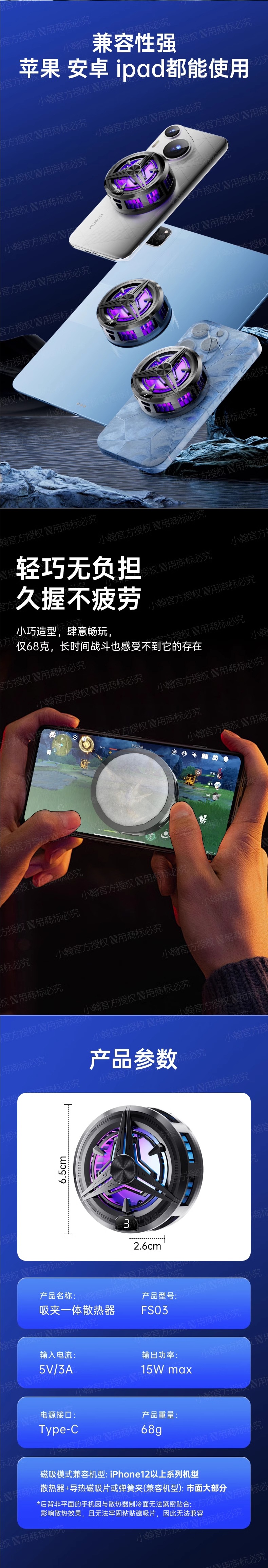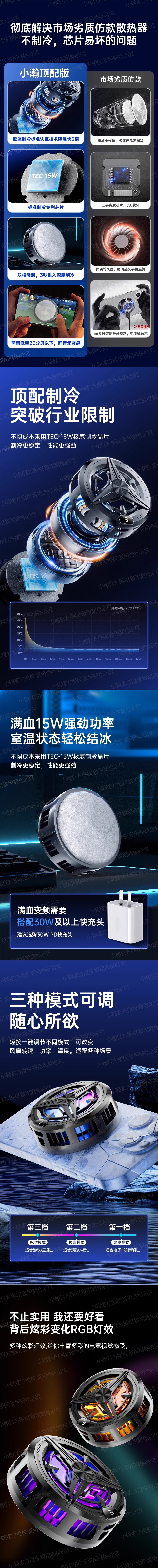기장 검은 상어 사과 플러스 얼음 음소거를위한 휴대 전화 라디에이터 자기 반도체 냉각 유물