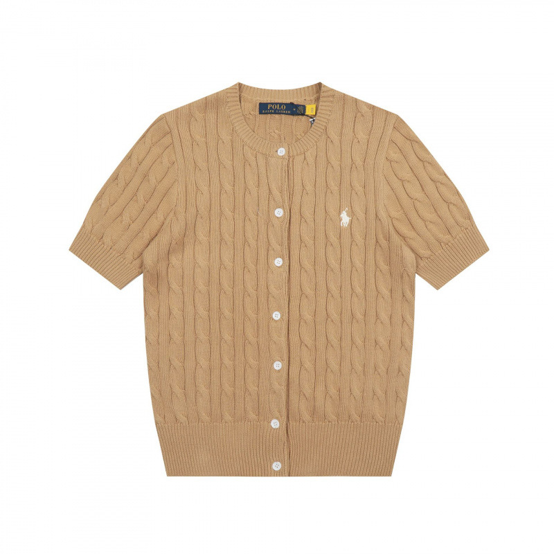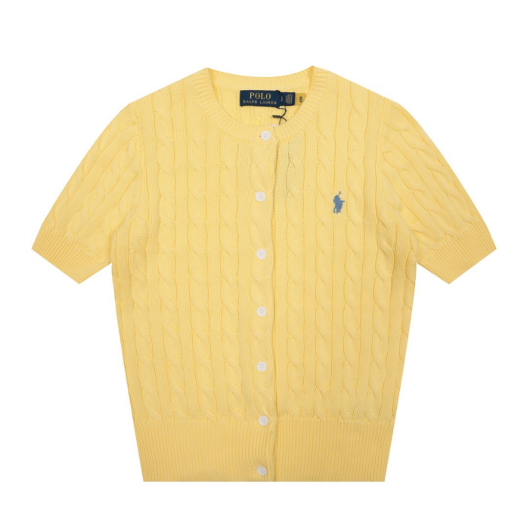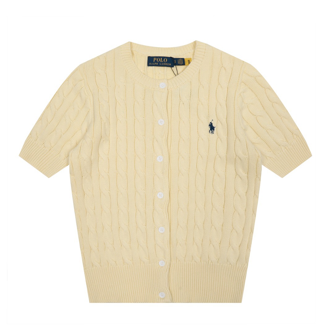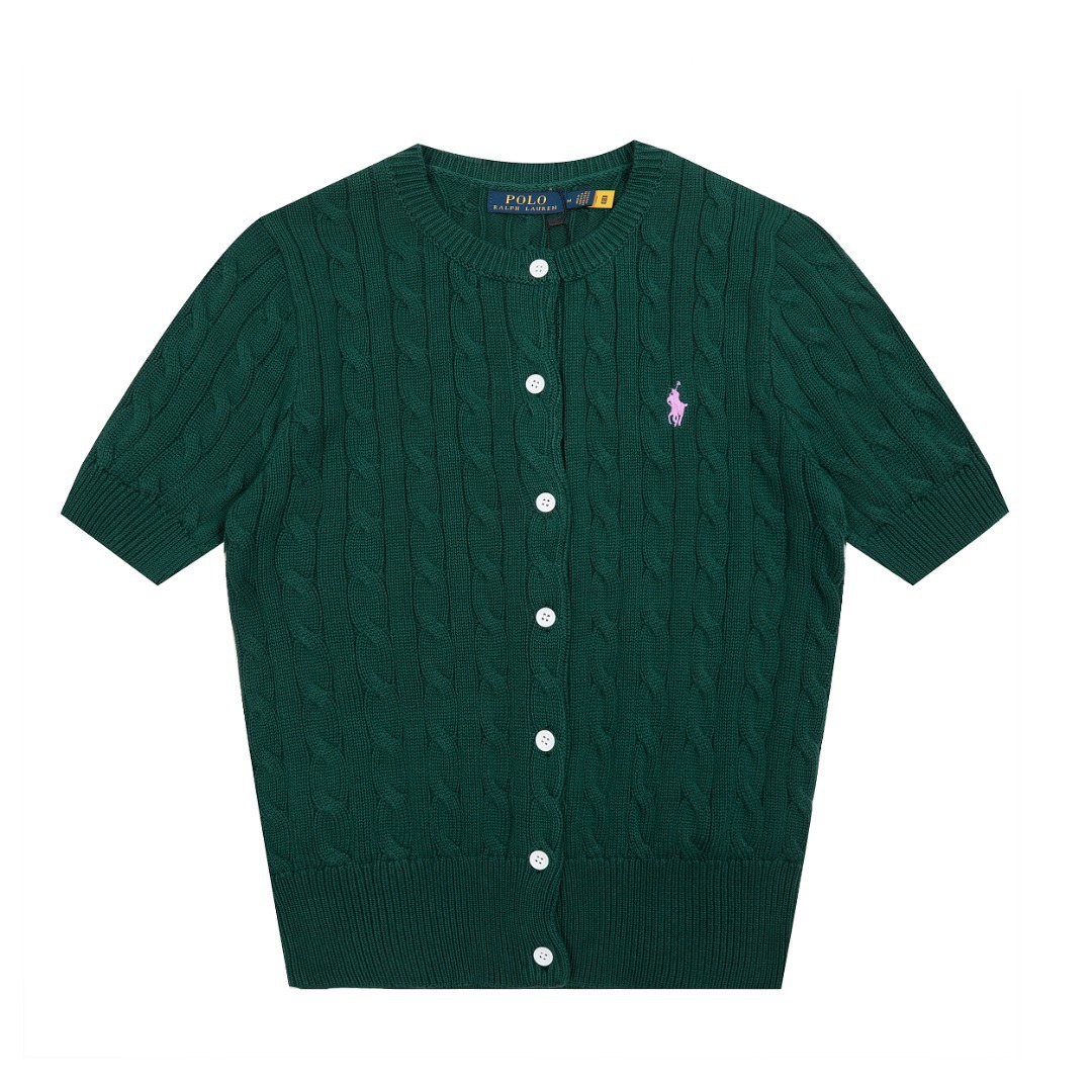 SS 스윕 RL 러프 포니 자수 폴로 반팔 니트 셔츠 트위스트 카디건 여성용 간단한 티셔츠 탑