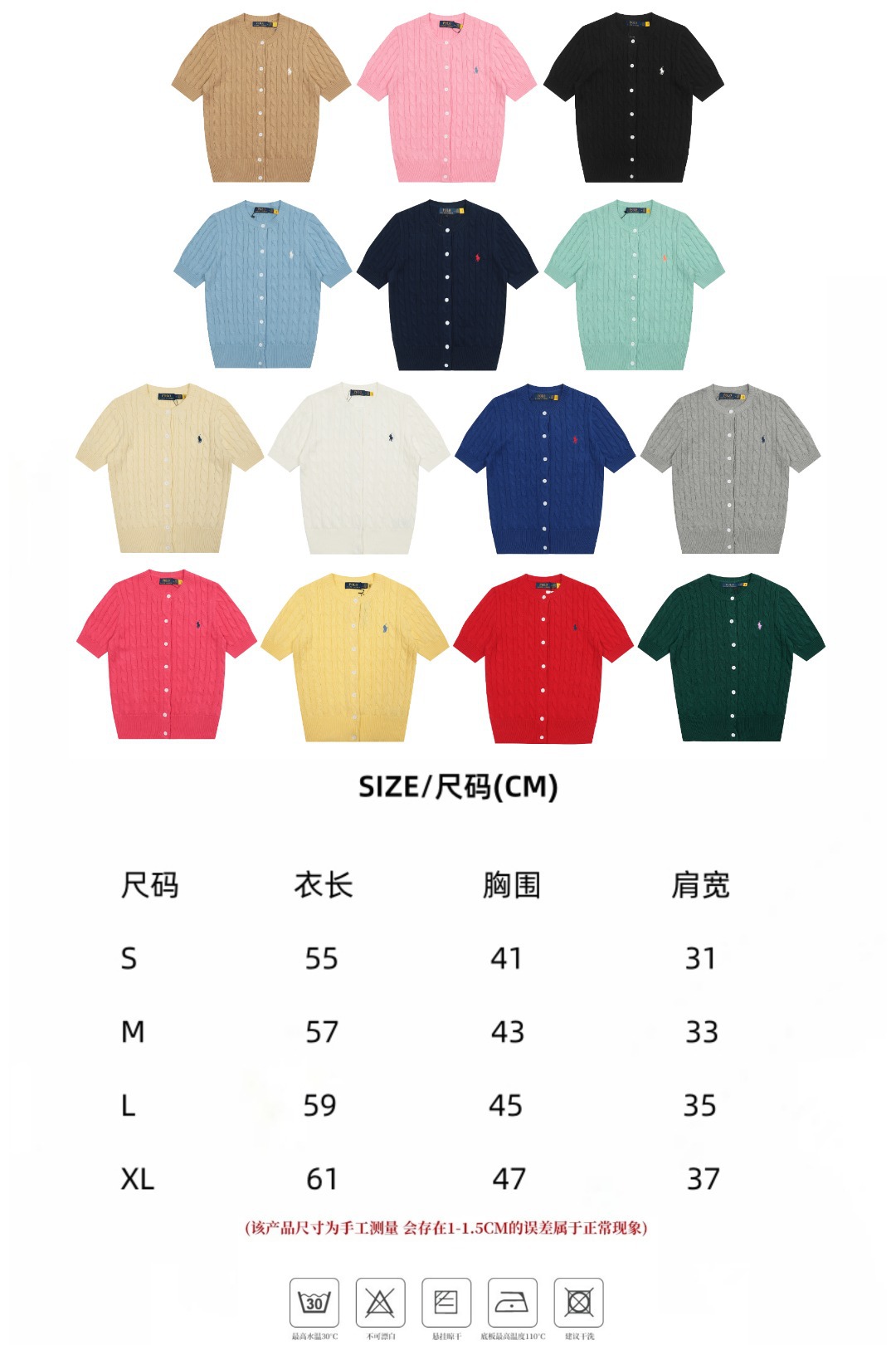 SS 스윕 RL 러프 포니 자수 폴로 반팔 니트 셔츠 트위스트 카디건 여성용 간단한 티셔츠 탑스토어 가기