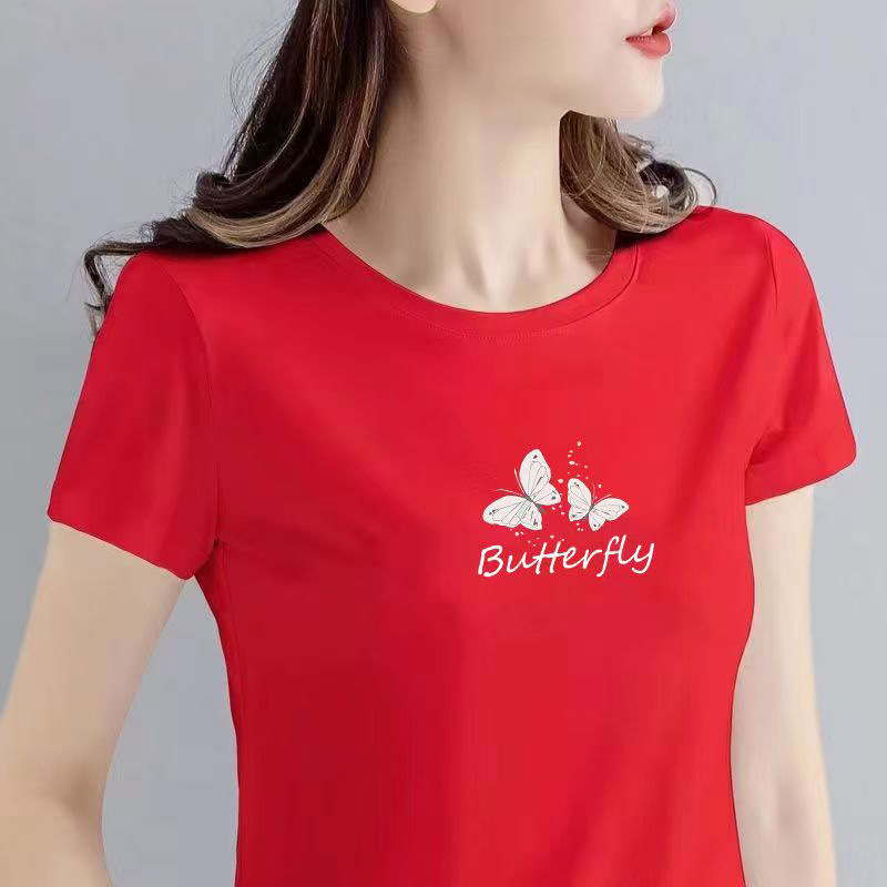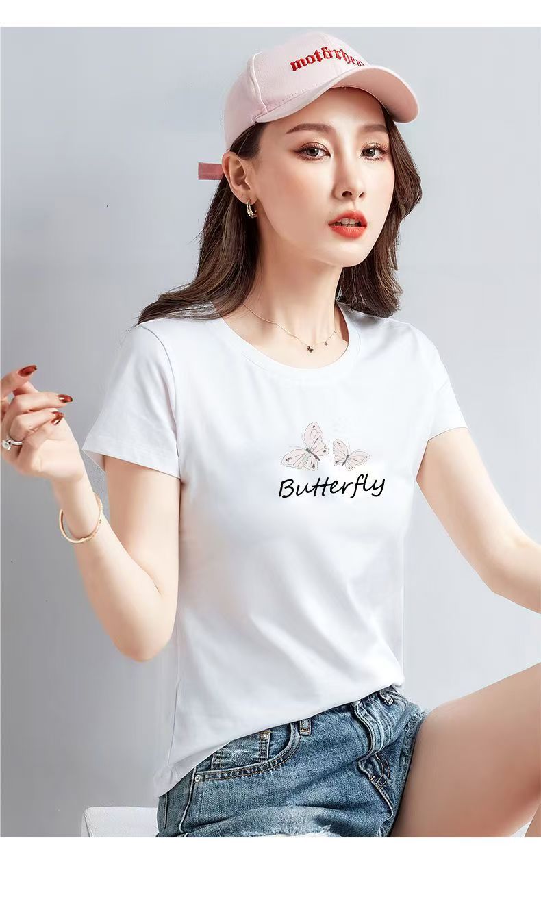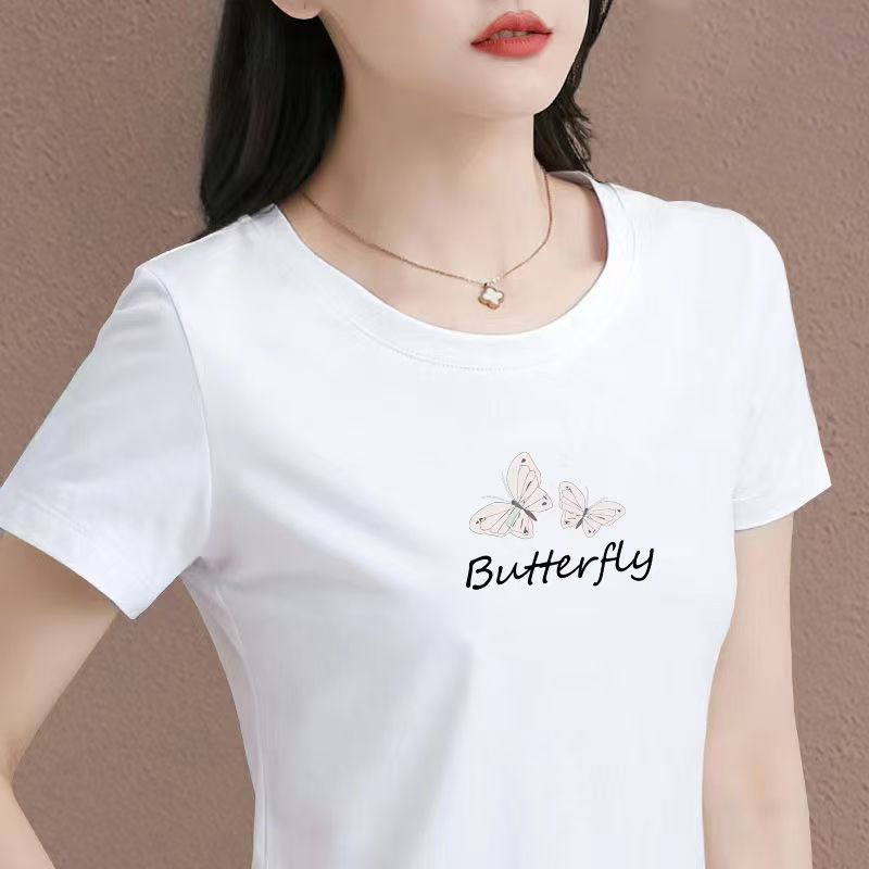 100 면 반팔 티셔츠 여성 여름 새로운 도착 한국 스타일 우아한 슬림핏 슬리밍 육체 커버 최고 여성 패셔너블 티셔츠