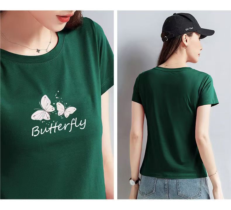 100 면 반팔 티셔츠 여성 여름 새로운 도착 한국 스타일 우아한 슬림핏 슬리밍 육체 커버 최고 여성 패셔너블 티셔츠스토어 가기