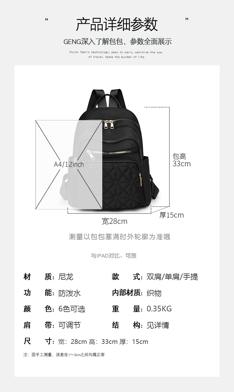 옥스포드 여행 배낭 캐주얼 국경 간 도시 간단한 여성 한국 통근 패션 2024 새로운